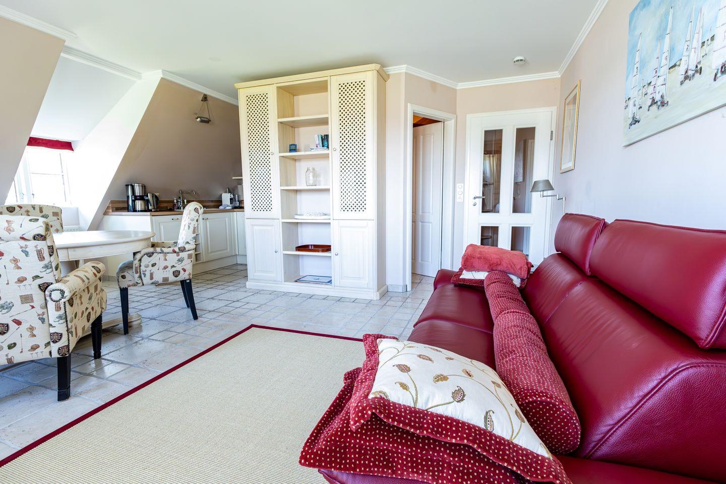 Das Appartement besticht durch eine liebevolle und hochwertige Einrichtung und erstreckt sich über 2 Etagen in einem traditionell gebauten Reetdachhaus nach historischem Vorbild. Es liegt mitten im Dorfzentrum mit Blick auf den Marktplatz, immer mittwochs können Sie hier das bunte Treiben der Händler beobachten. Restaurants und Einkaufsmöglichkeiten sind fußläufig erreichbar, ebenso der Deich zum Südstrand, auf dem es sich herrlich ins Bad oder Richtung Böhl spazieren lässt.