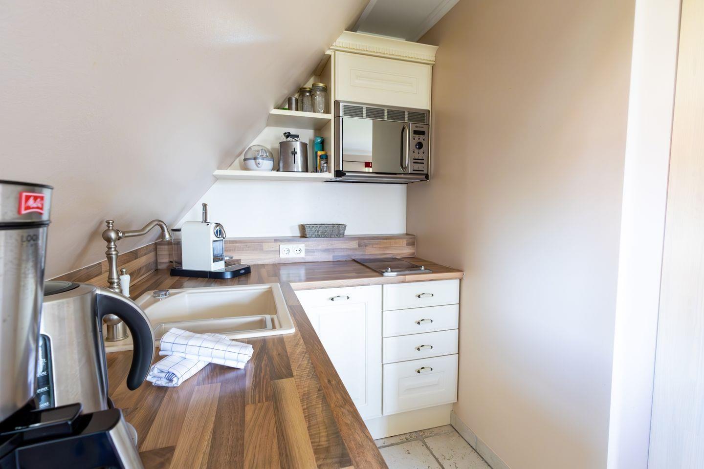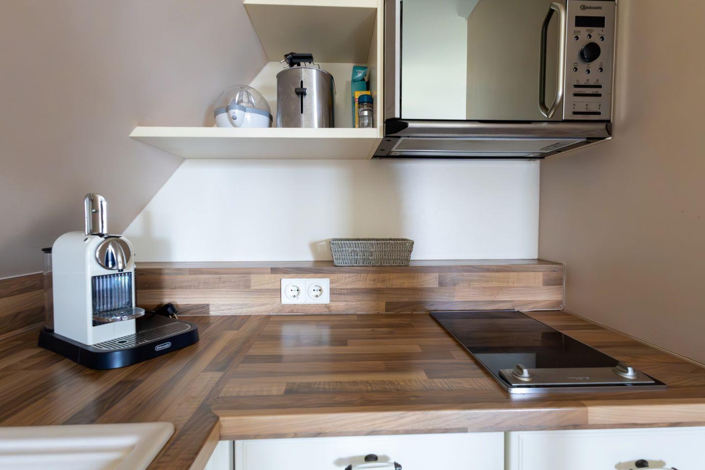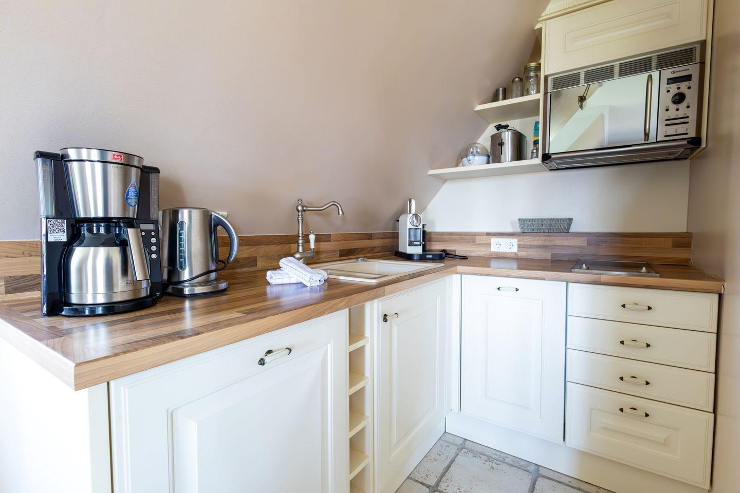 Bitte beachten Sie, dass in der Küche kein Backofen vorhanden ist, es steht aber eine Mikrowelle mit Aufbackfunktion bereit.