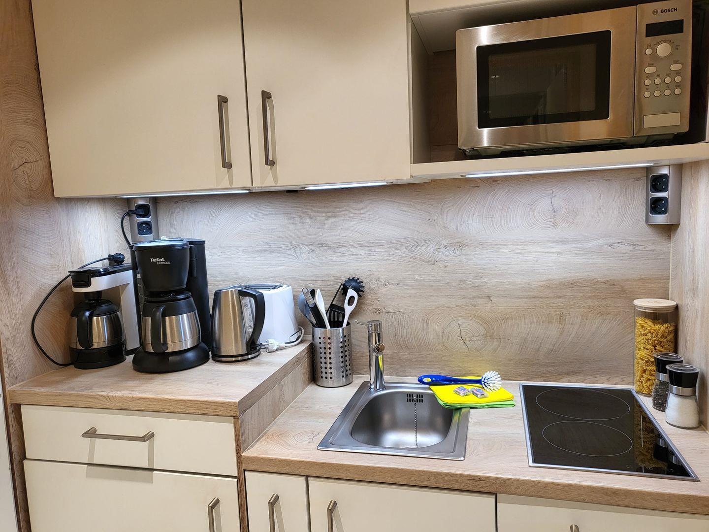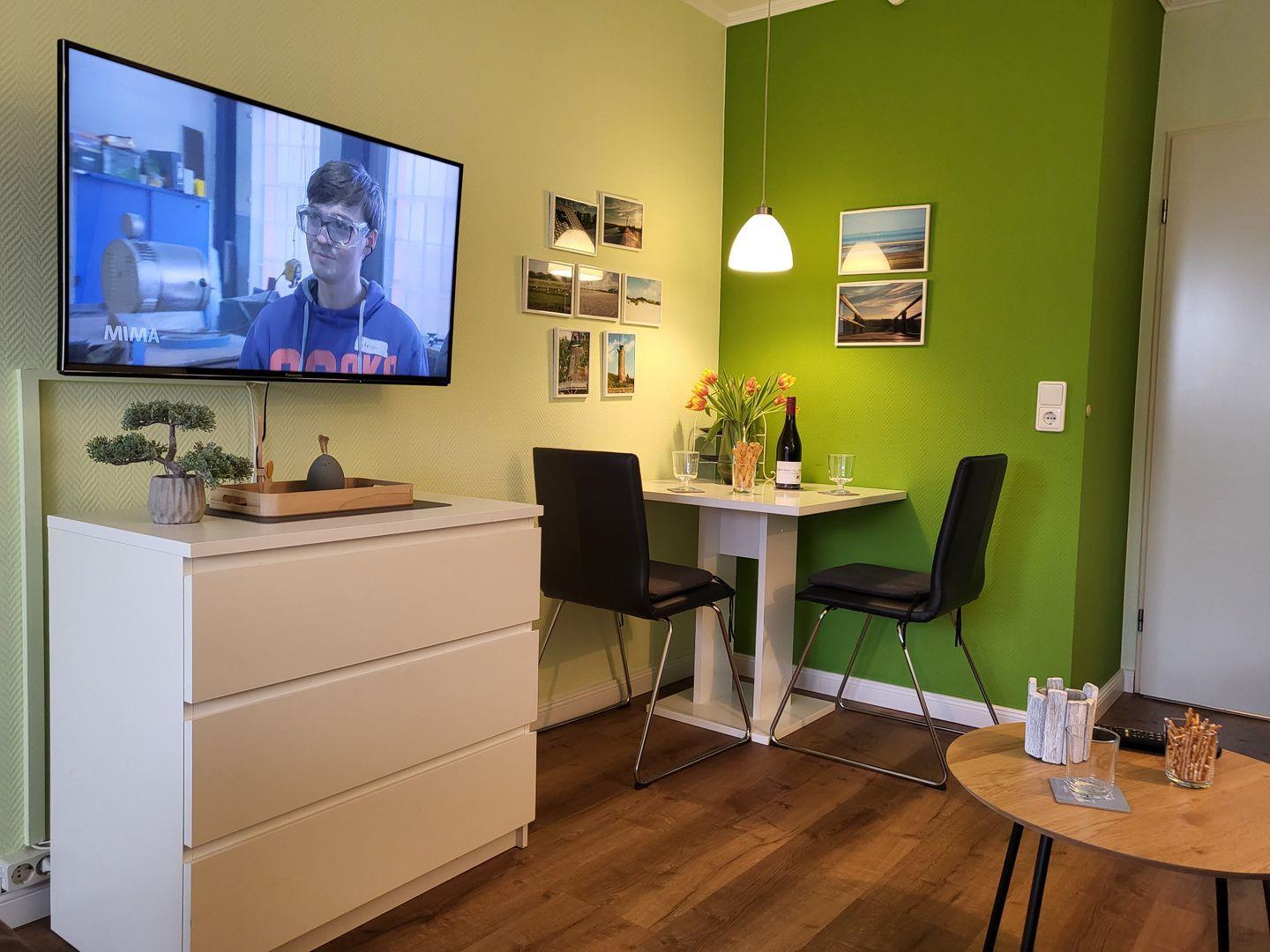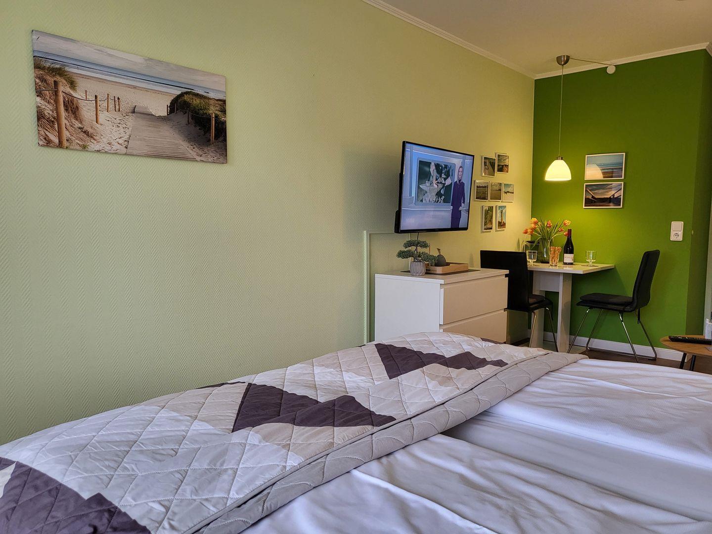 Zentrale 1 Zimmer-Wohnung mit Balkon zur Seeseite. Ausgestattret mit Doppelbett, Kochnische, Duschbad mit WC, TV und Musikanlage.