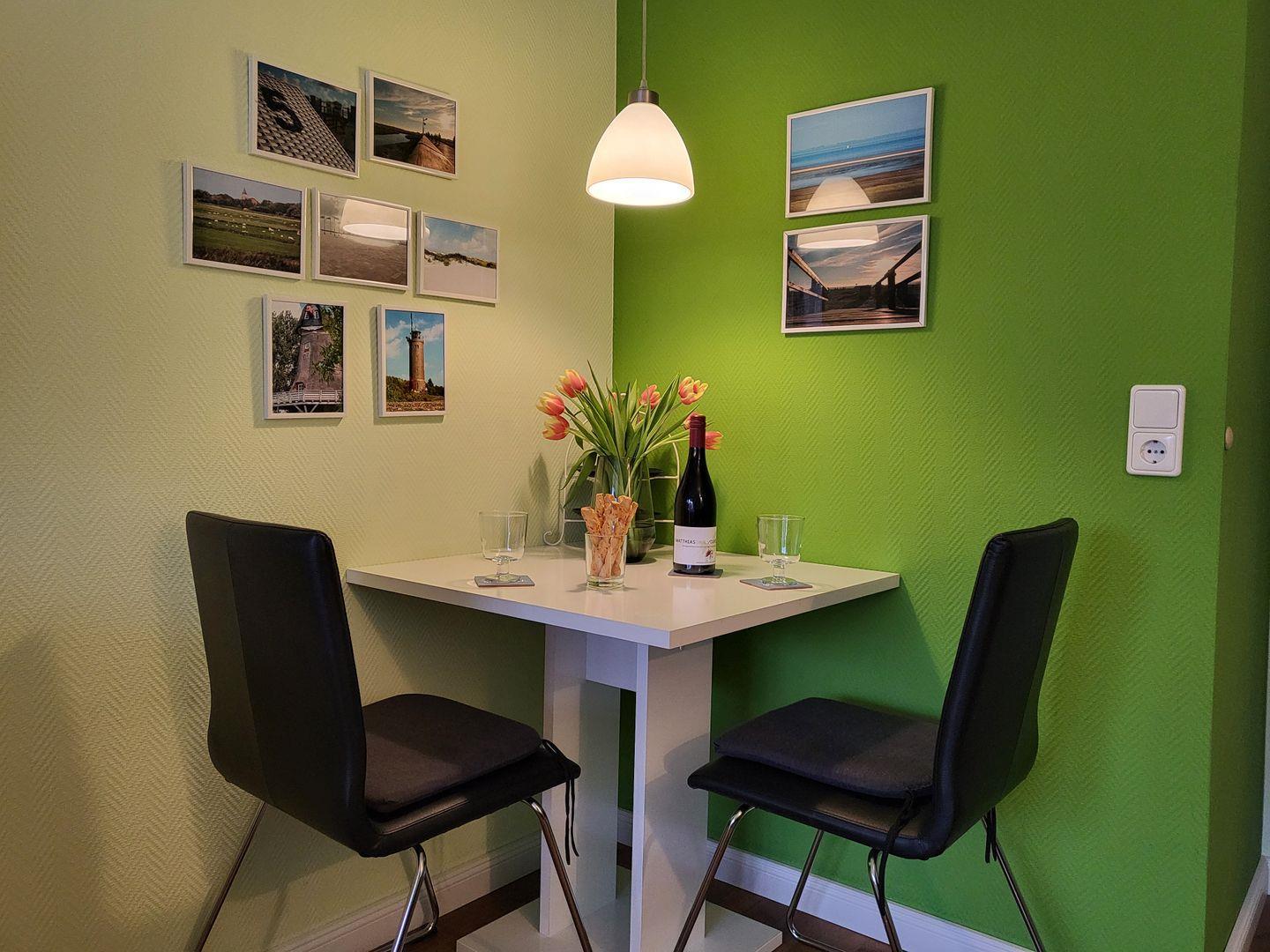 Die moderne, 25m² große Ferienwohnung liegt in der 1. Etage und bietet 2 Personen Platz für einen wunderbaren Urlaub in St. Peter Ording. Der kombinierte Wohn-Schlafraum ist modern und hell eingerichtet. Dort befinden sich neben dem großzügigen Doppelbett noch eine Sitzecke mit zwei Sesseln sowie ein Flachbild-TV und Radio. Kostenfreies W-LAN ist vorhanden. Der möblierte Balkon ist zur Seeseite ausgerichtet und bietet einen tollen Blick auf die Flaniermeile des Ortsteiles. Zur Ferienwohnung gehört eine kompakte Pantryküche mit Kühlschrank, Kaffeemaschine und Wasserkocher.