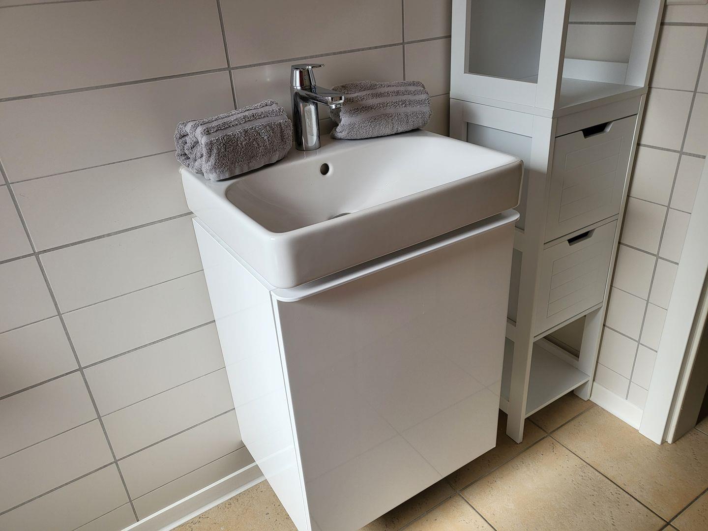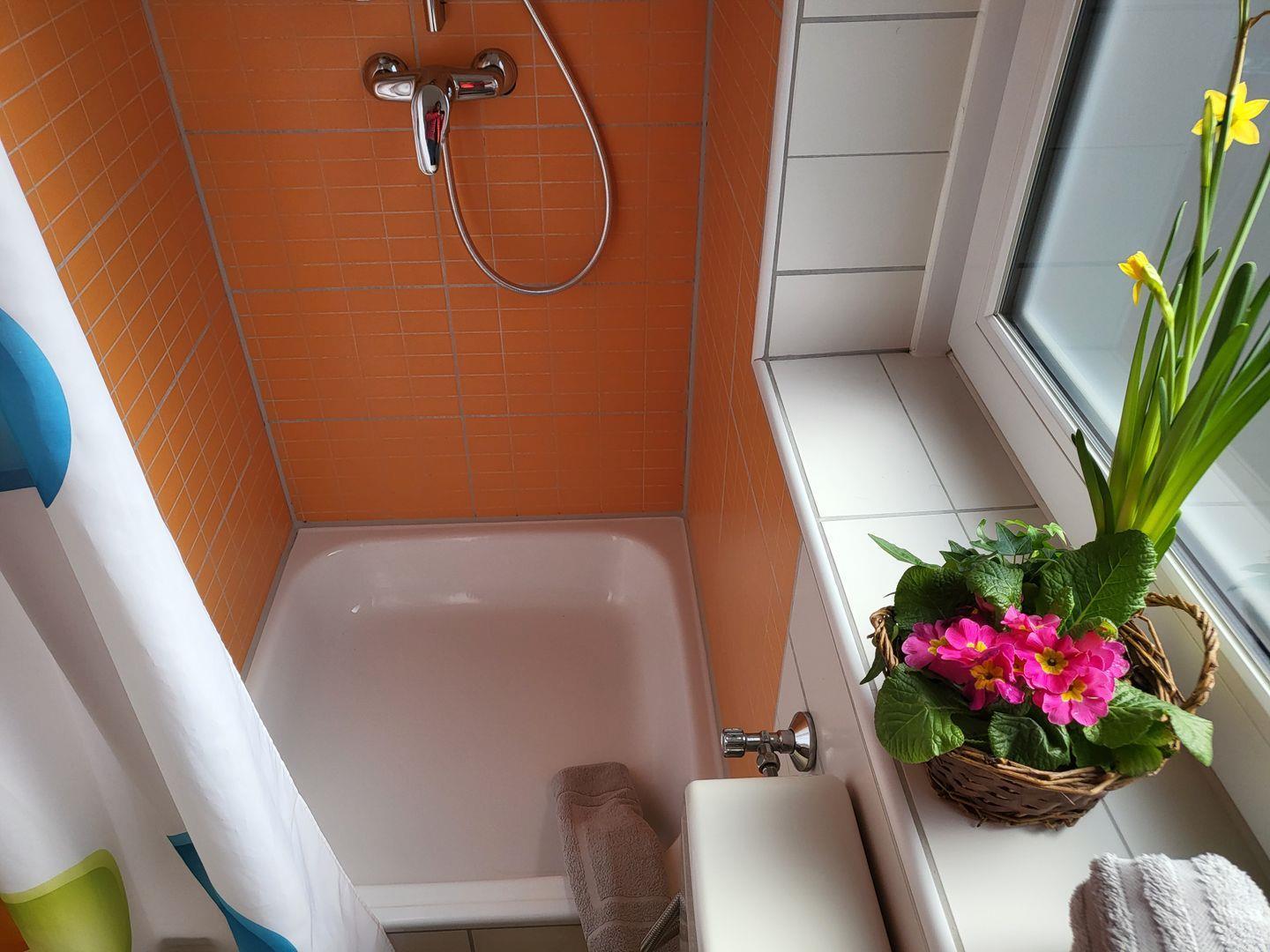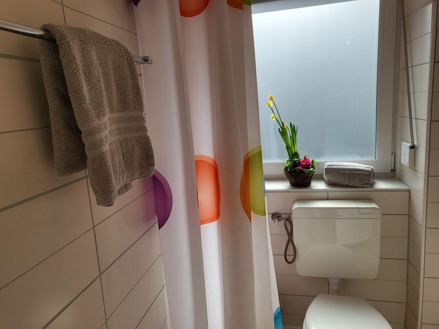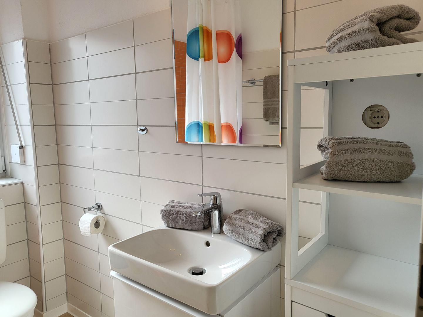 Duschbad mit WC, 2 Schlafzimmer mit Doppelbetten, 1x 1,40m + 1x 1,60m, Wannenbad mit WC, Kinderbett und