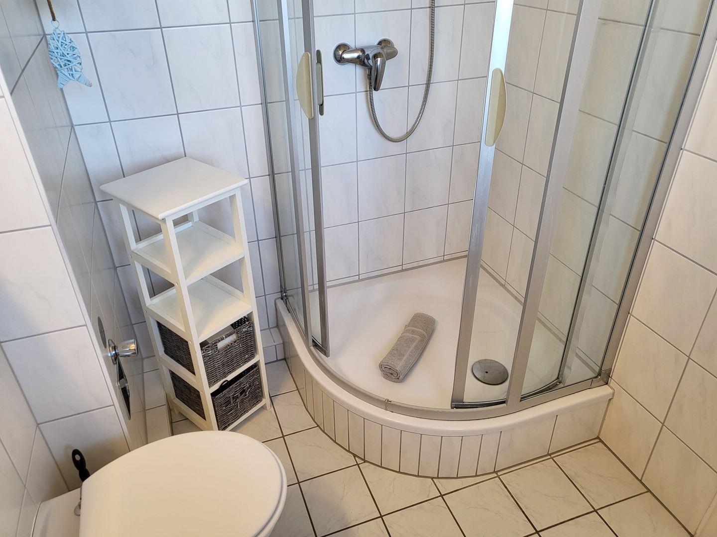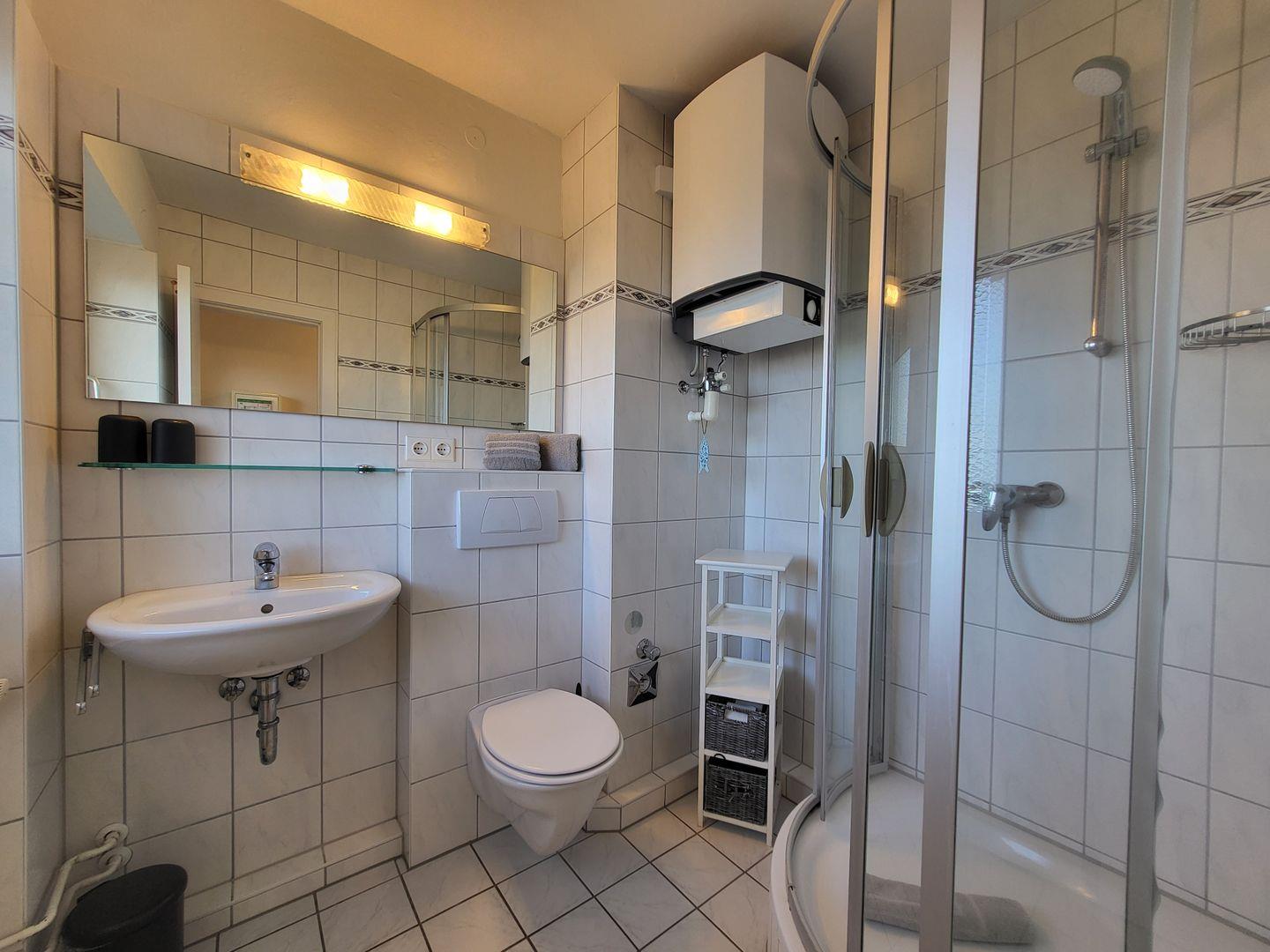 Die Küche ist sehr gut ausgestattet und verfügt zudem über ein Cerankochfeld, Backofen, Mikrowelle, Kühlschrank und eine Kaffeemaschine für den morgendlichen Muntermacher. Die Ferienwohnung verfügt zudem über Duschbad mit WC.