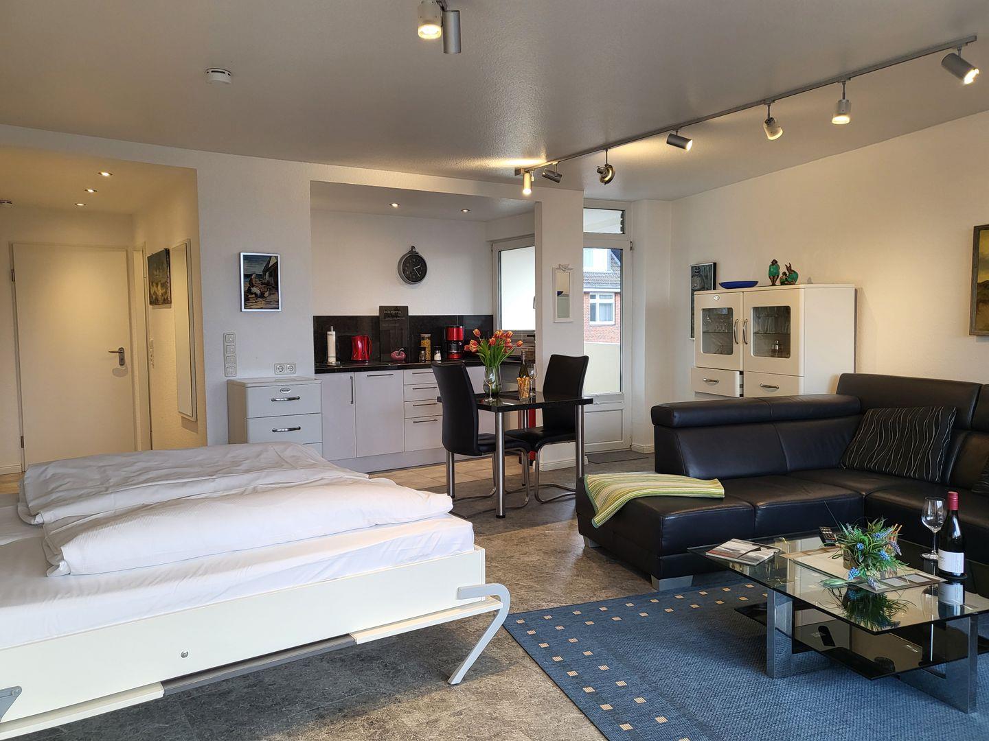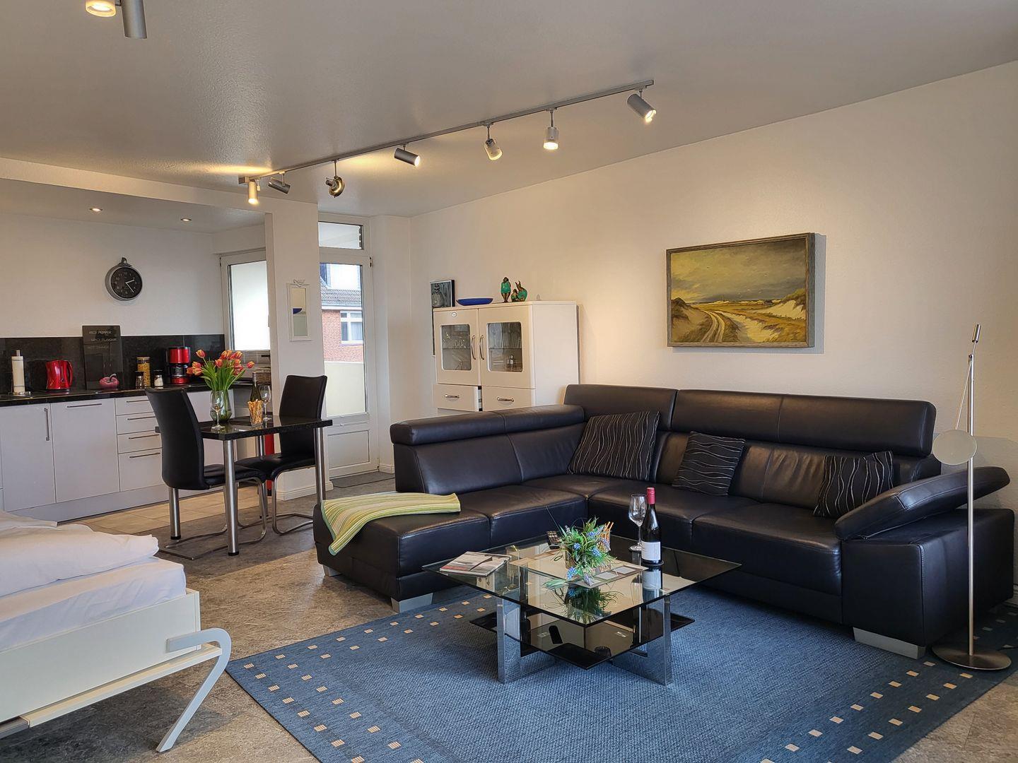 Die 50m² große, wunderbar hell und einladend wirkende 1-Zimmer Ferienwohnung liegt in der 2. Etage und bietet 2 Personen Platz für einen wunderbaren Urlaub in St. Peter Ording.