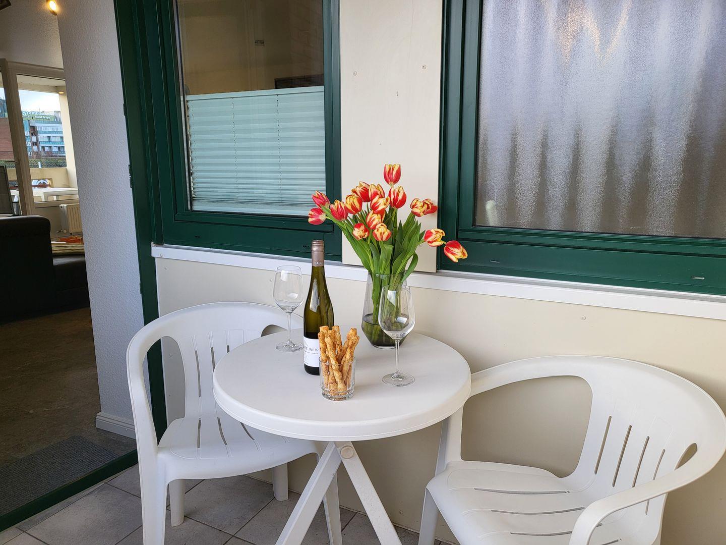 Zentrale, allergikerfreundliche Ferienwohnung mit Balkon und teilweisem Seeblick in St. Peter-Ording.