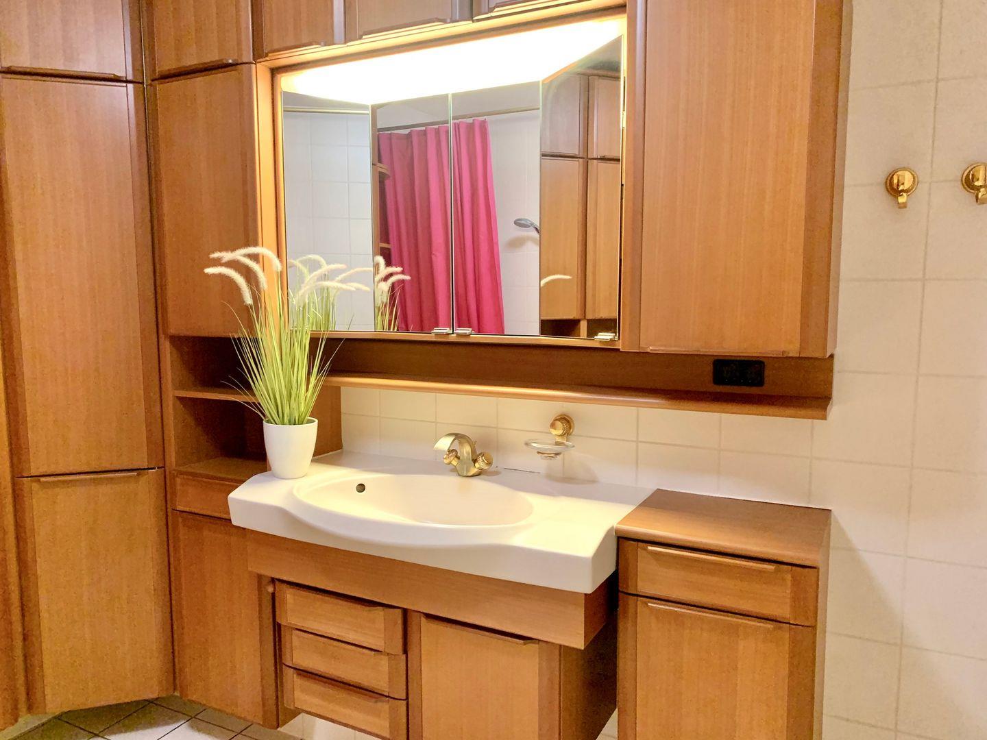 Das großzügige Badezimmer der Ferienwohnung verfügt über Badewanne und WC.