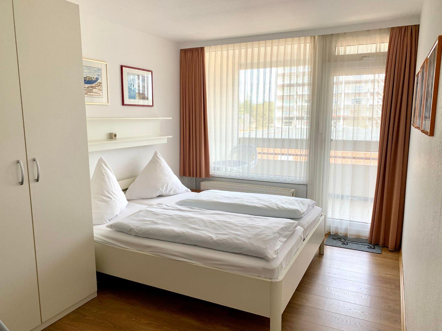 Das zweite (kleinere) Schlafzimmer ist ausgestattet mit zwei Einzelbetten 90x200 und einem Kleiderschrank.