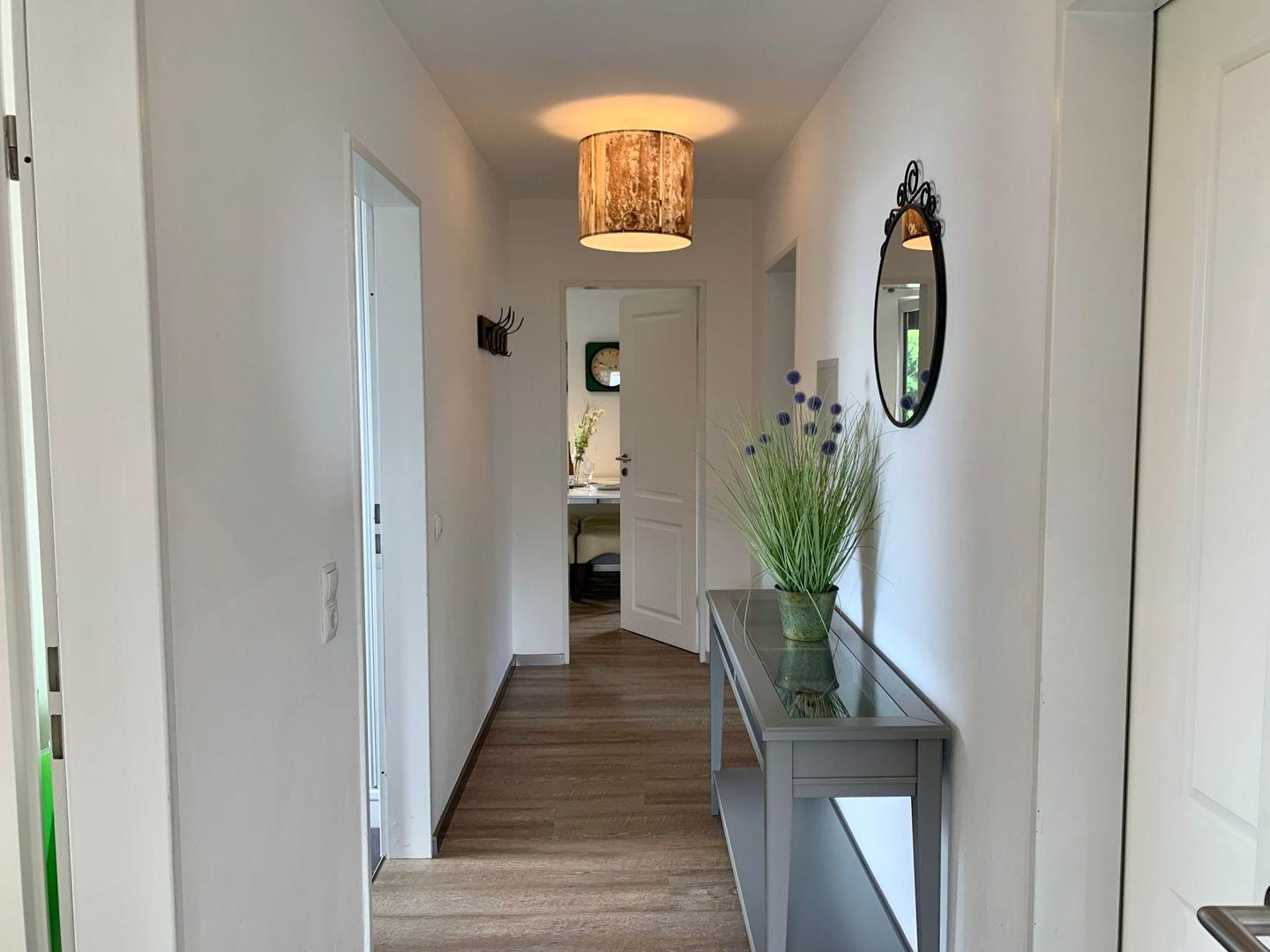 Die 50m² große 3-Zimmer Ferienwohnung liegt im Obergeschoss eines ruhigen Einfamilienhauses.