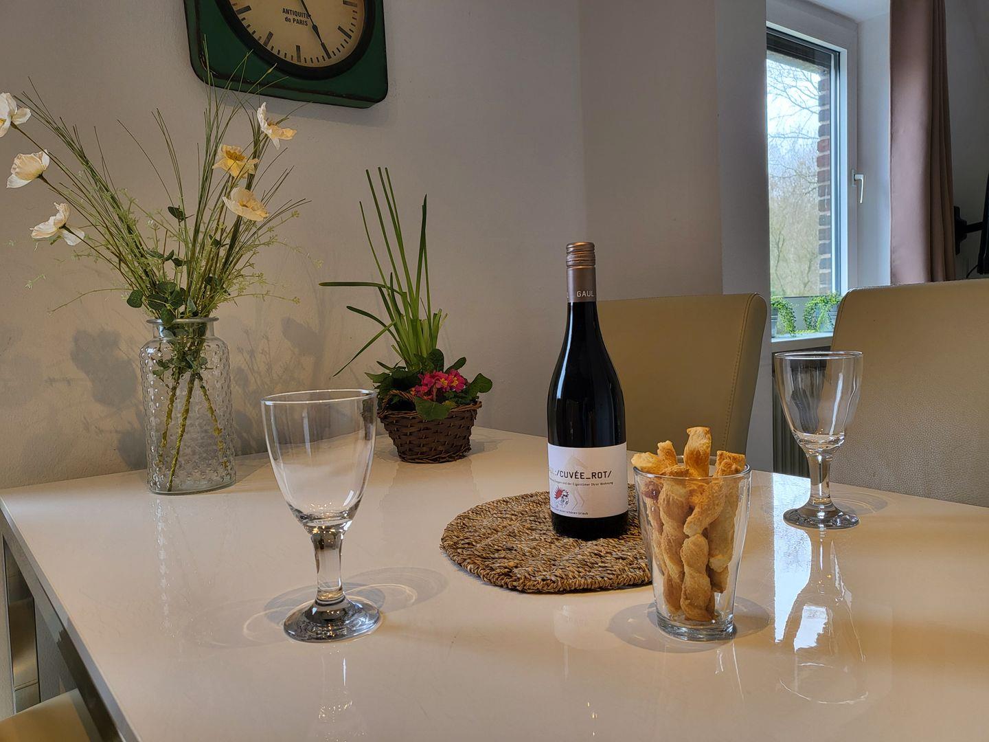 Für die multimediale Unterhaltung sorgen Flachbild-TV und kostenfreies W-LAN. Am angrenzenden Esstisch findet die ganze Familie Platz.