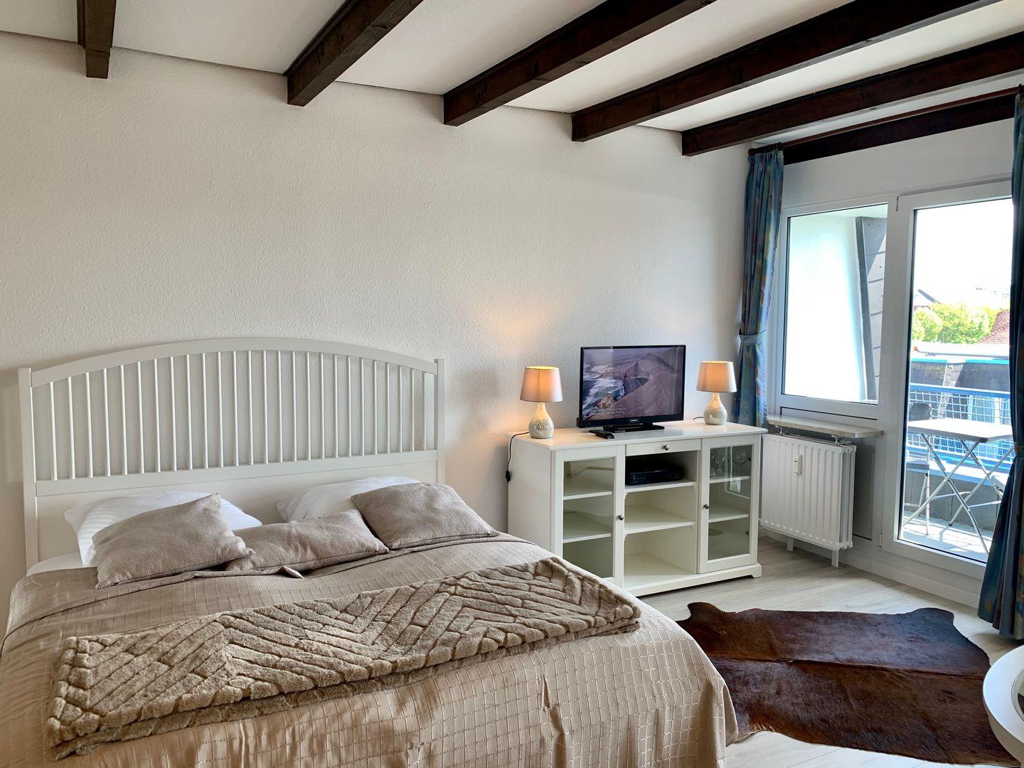 Renoviertes, sehr zentral und strandnah gelegenes 1 Zimmer-Apartment für 2 Personen mit Baby bis maximal 3 Jahren in der 2. Etage. Möblierter Süd-Balkon.
