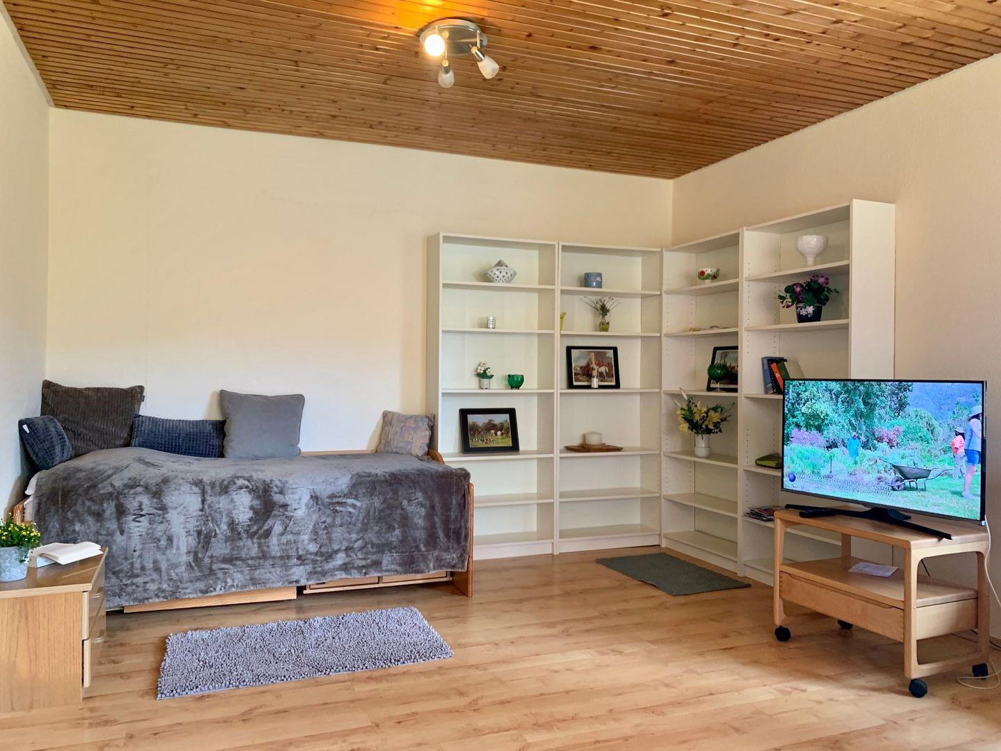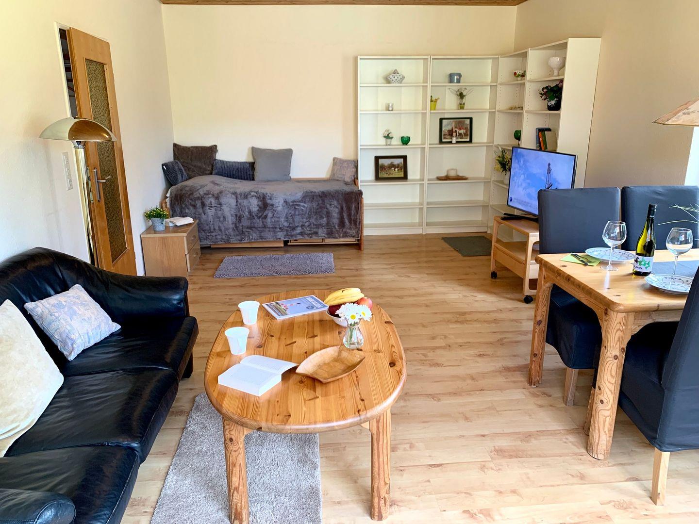 Rustikale 2 Zimmer-Wohnung im EG mit Terrasse, Wohnraum mit Einzelbett, Esstisch, ein kleiner