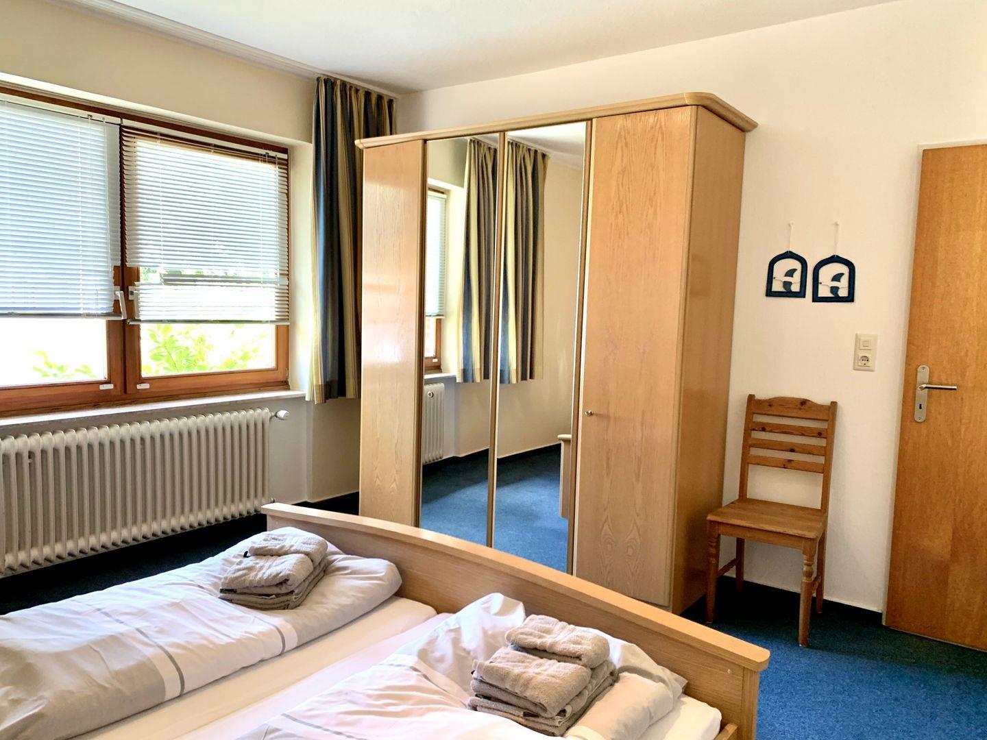 Das große Schlafzimmer ist mit komfortablem 180x200cm Doppelbett und Kleiderschrank ausgestattet.