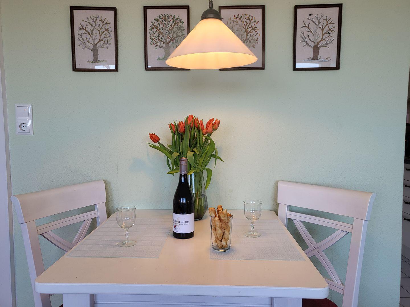 Eine Spülmaschine ist ebenfalls vorhanden. Ein hell und freundlich gefliestes Badezimmer mit einer Badewanne nebst Duschmöglichkeit sowie einem WC gehört ebenfalls zur Ausstattung der geschmackvoll eingerichteten Ferienwohnung.