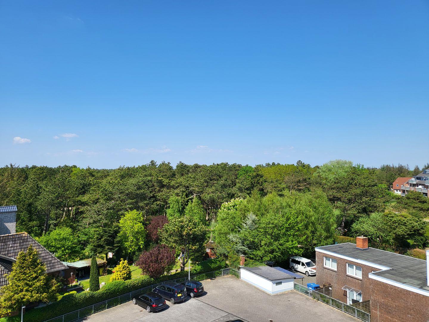 Der komplett möblierte Balkon bietet dank Morgensonne eine gute Frühstücksmöglichkeit im Freien und einen schönen Ausbllick auf das nahe Wald- und Dünengebiet.