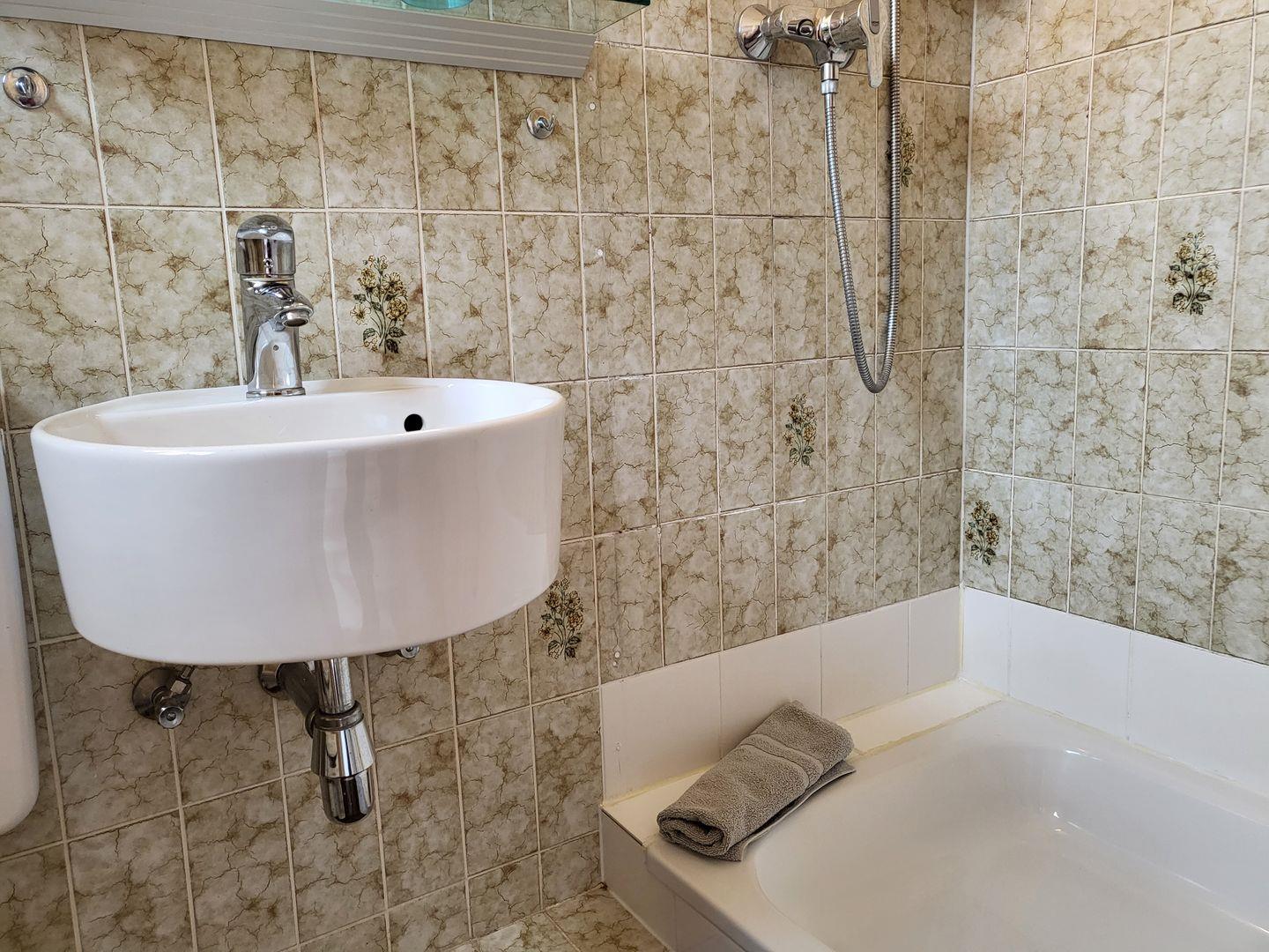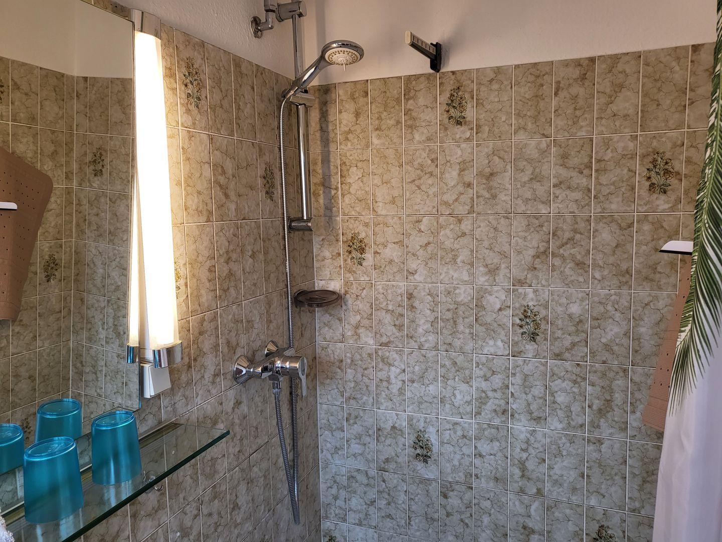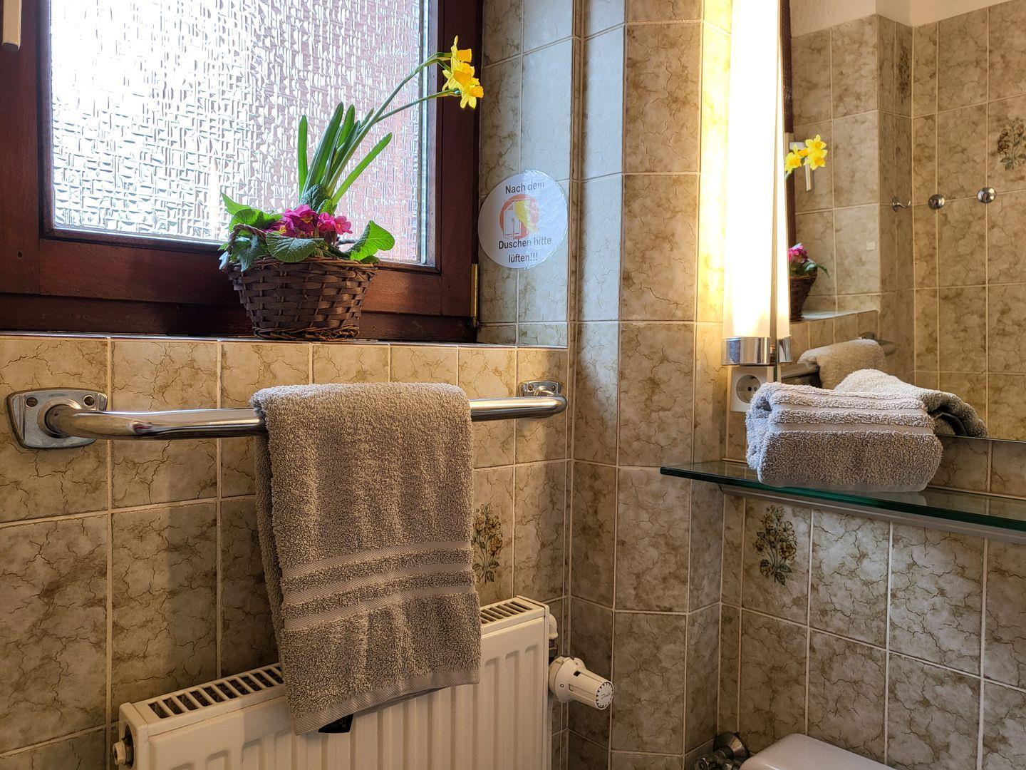 Zur Ferienwohnung gehört ein Duschbad mit WC. Zum Keller gehört eine Gemeinschaftswaschmaschine.
