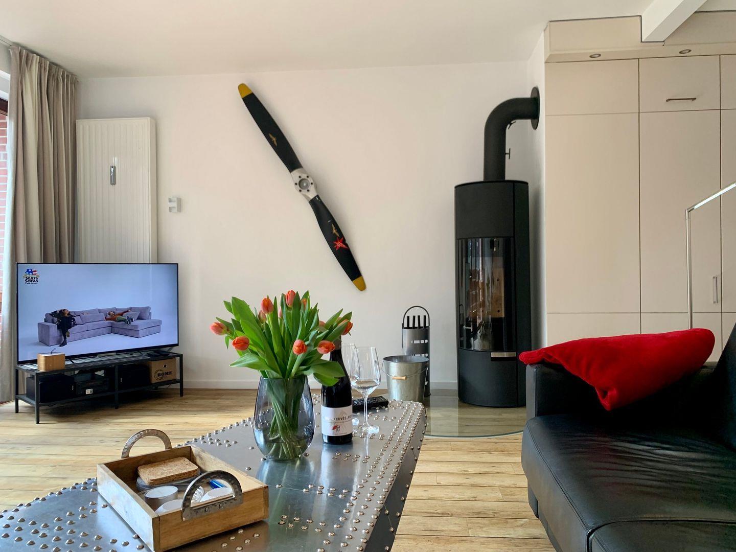 Für wohlig gemütliche Stunden steht der hauseigene Kaminofen zur Verfügung.
