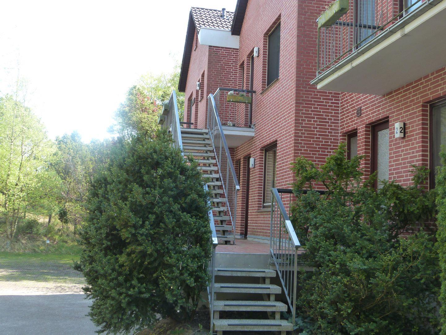 Zur Ferienwohnung, die über eine Außentreppe erreicht wird, gehört ein großer, möblierter Balkon.