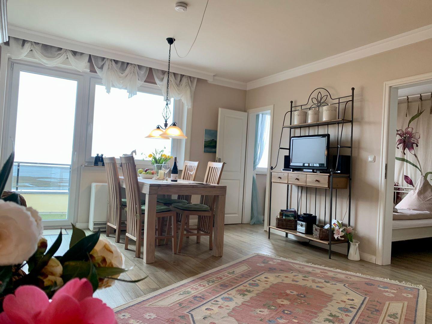 Komfortable 2-Zimmer-Ferienwohnung in St. Peter-Ording mit Balkon und direktem Meerblick für einen erholsamen Aufenthalt.