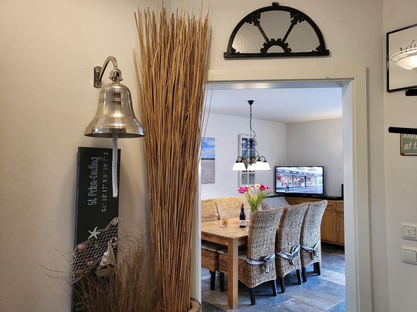 Dat Johannsen Hus am Meer liegt wunderbar ruhig und dennoch zentral im beliebten Ortsteil Dorf. Durch die tolle Lage sind Restaurants, Cafés und Geschäfte genau wie die Sehenswürdigkeiten und Strände in St. Peter Ording gut zu erreichen. In unmittelbarer Nähe lädt ein kleines Wäldchen zu Spaziergängen im Grünen ein. Der beliebte Südstrand ist fußläufig erreichbar. Die 96m² große, hochwertig eingerichtete und modern ausgestattet Doppelhaushälfte bietet bis zu 4 Personen und zwei Hunden Platz für einen wunderbaren Nordseeurlaub in St. Peter Ording. Wunderbar geeignet auch für den Urlaub mit der Familie, Kinder sind hier herzlich willkommen. Ein Parkplatz am Haus ist vorhanden, für Fahrräder gibt es einen Abstellraum.