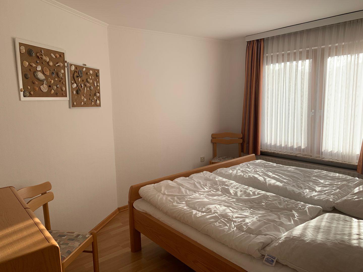 3 Zimmer Ferienwohnung mit Terrasse und Garten, 2 Schlafzimmer, eines mit Doppelbett, eines mit 2