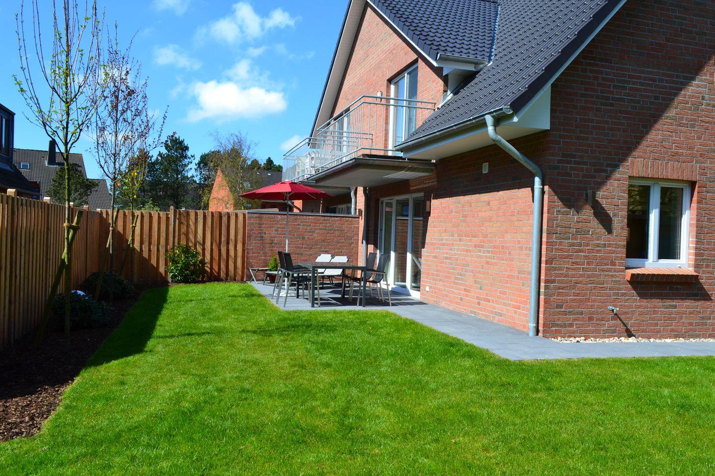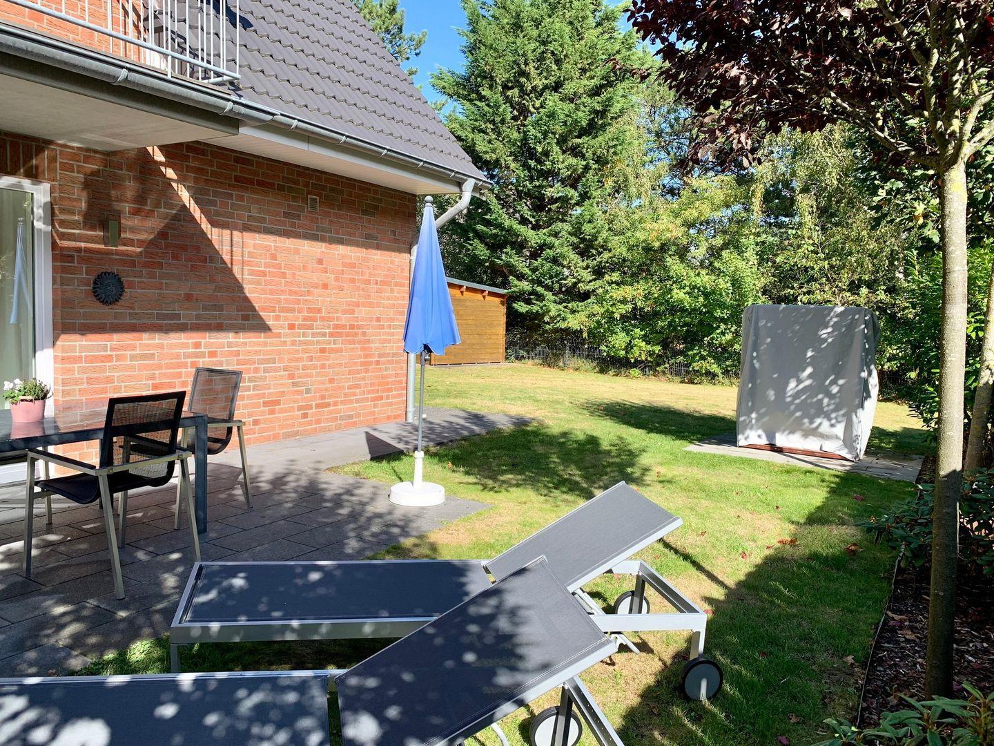 Moderne 3-Zimmer Ferienwohnung mit großer Terrasse und Garten in St. Peter-Ording für erholsamen Familienurlaub.