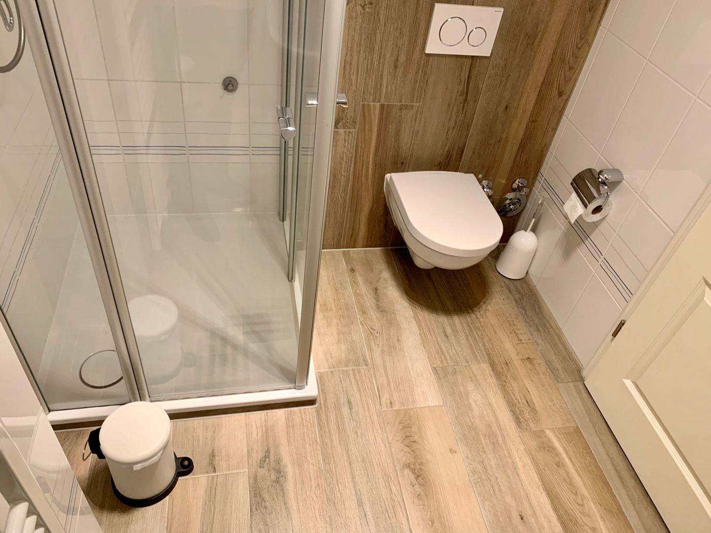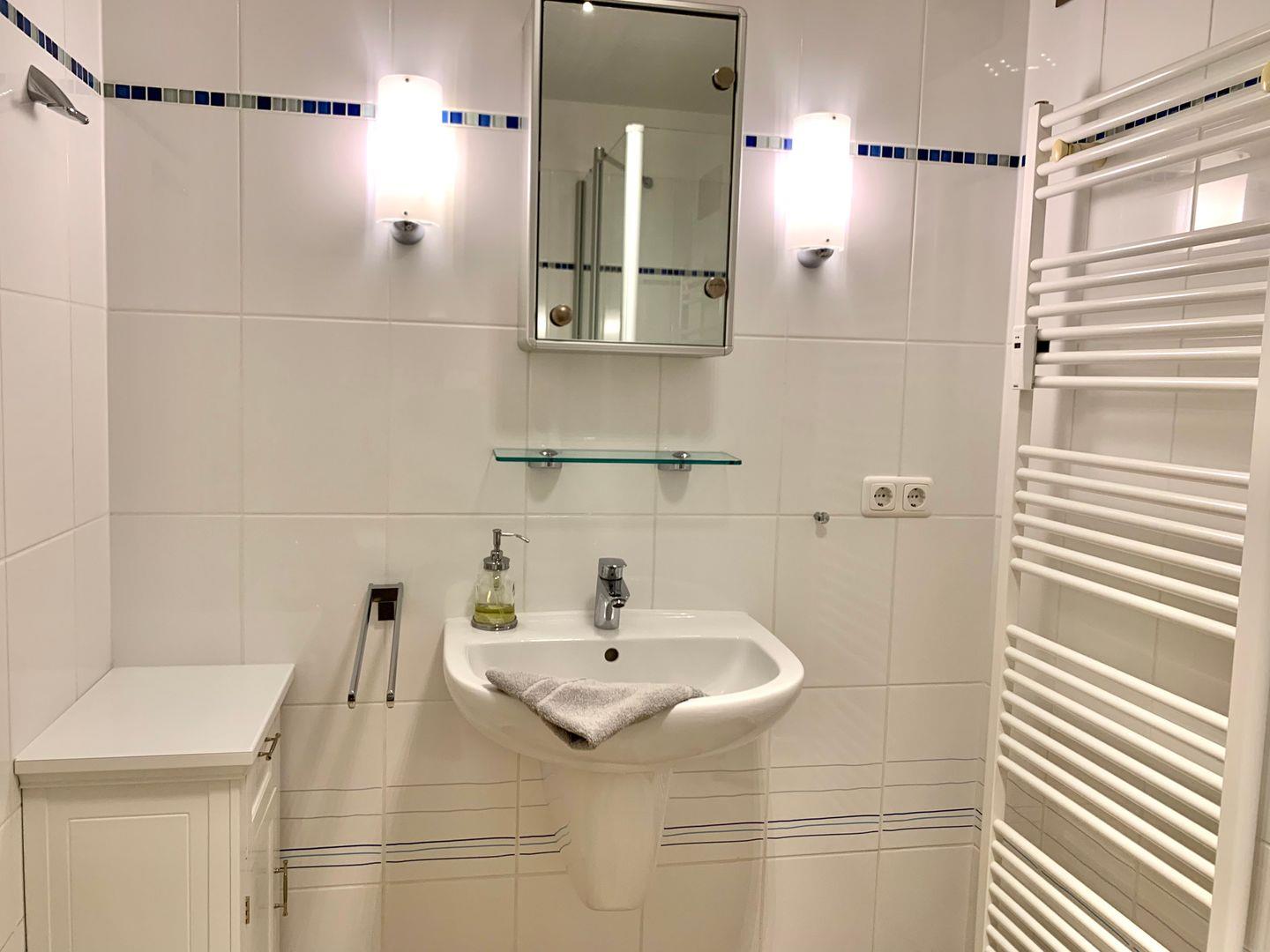 Zur Ferienwohnung gehört zudem ein edles Designerbad mit Dusche und WC.