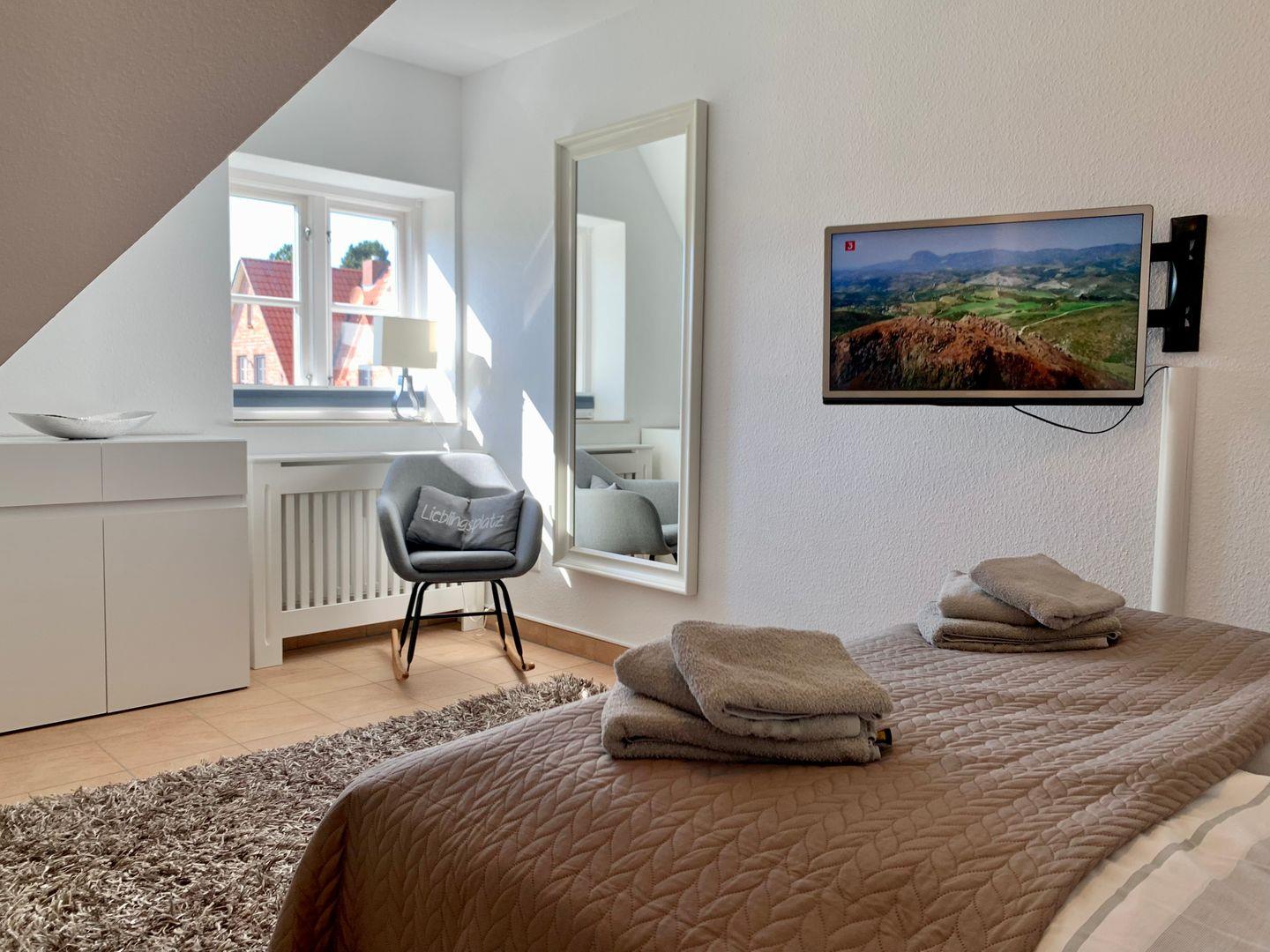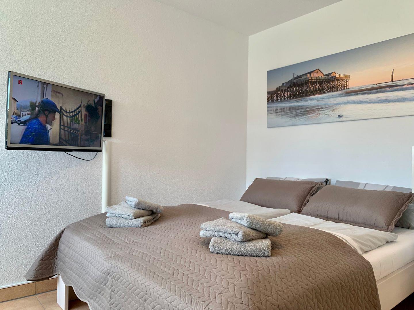 Im separaten Schlafzimmer steht ein sehr gemütliches 160x200cm Doppelbett zur Verfügung, ein weiterer Flachbild-TV sorgt für gemütliche Stunden.