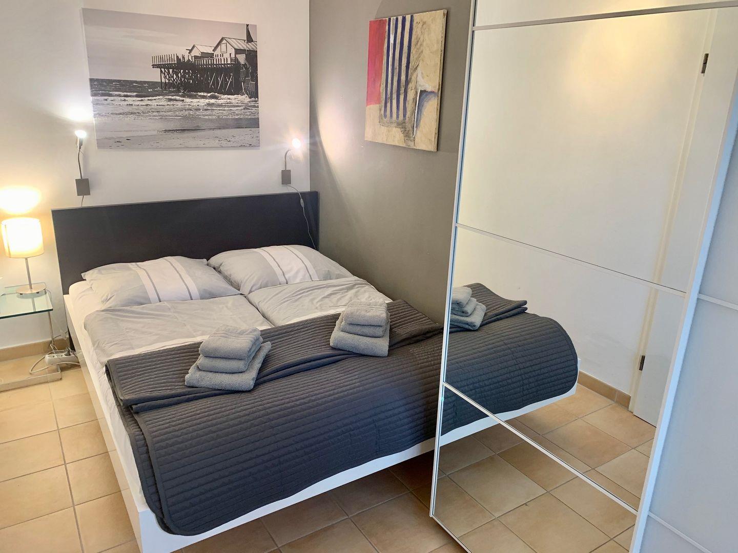 Gefliest, Nichtraucher, keine Haustiere, PKW-Stellplatz, W-LAN, Terrasse, Grill, Strandkorb, Insektenschutzgitter im Schlafzimmer und an der Terrassentür