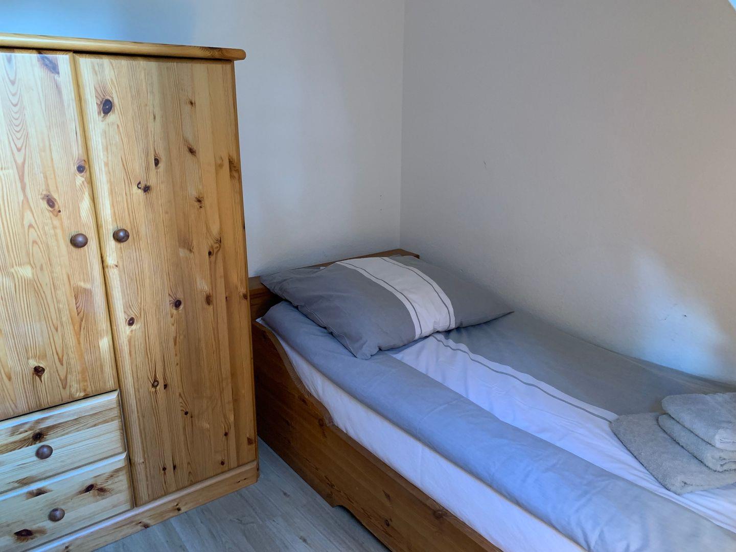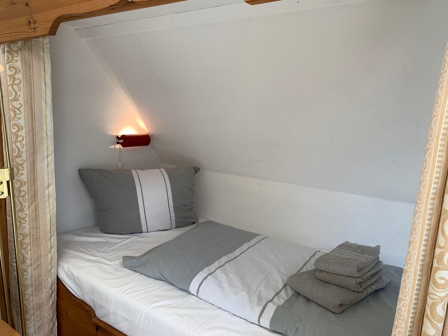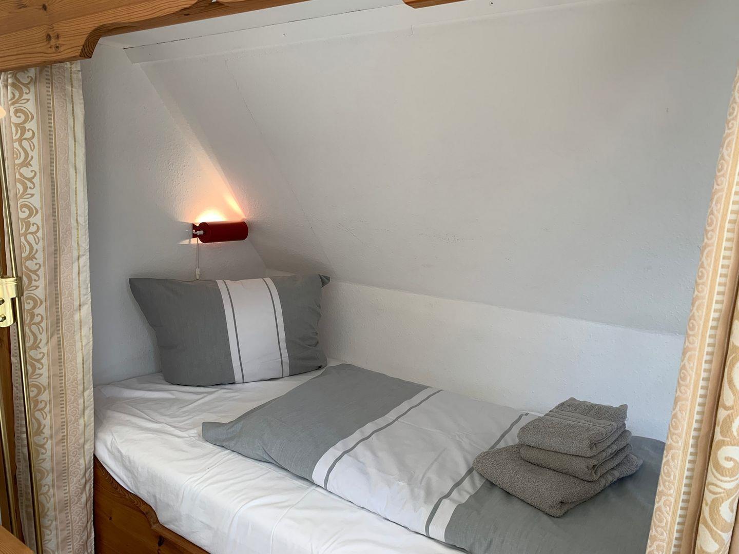 WC, 1 Schlafzimmer mit einem Einzelbett, im DG 2 Einzelbetten, Kinder-Bett u. Hochstuhl,