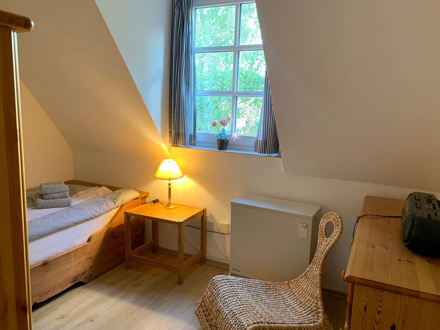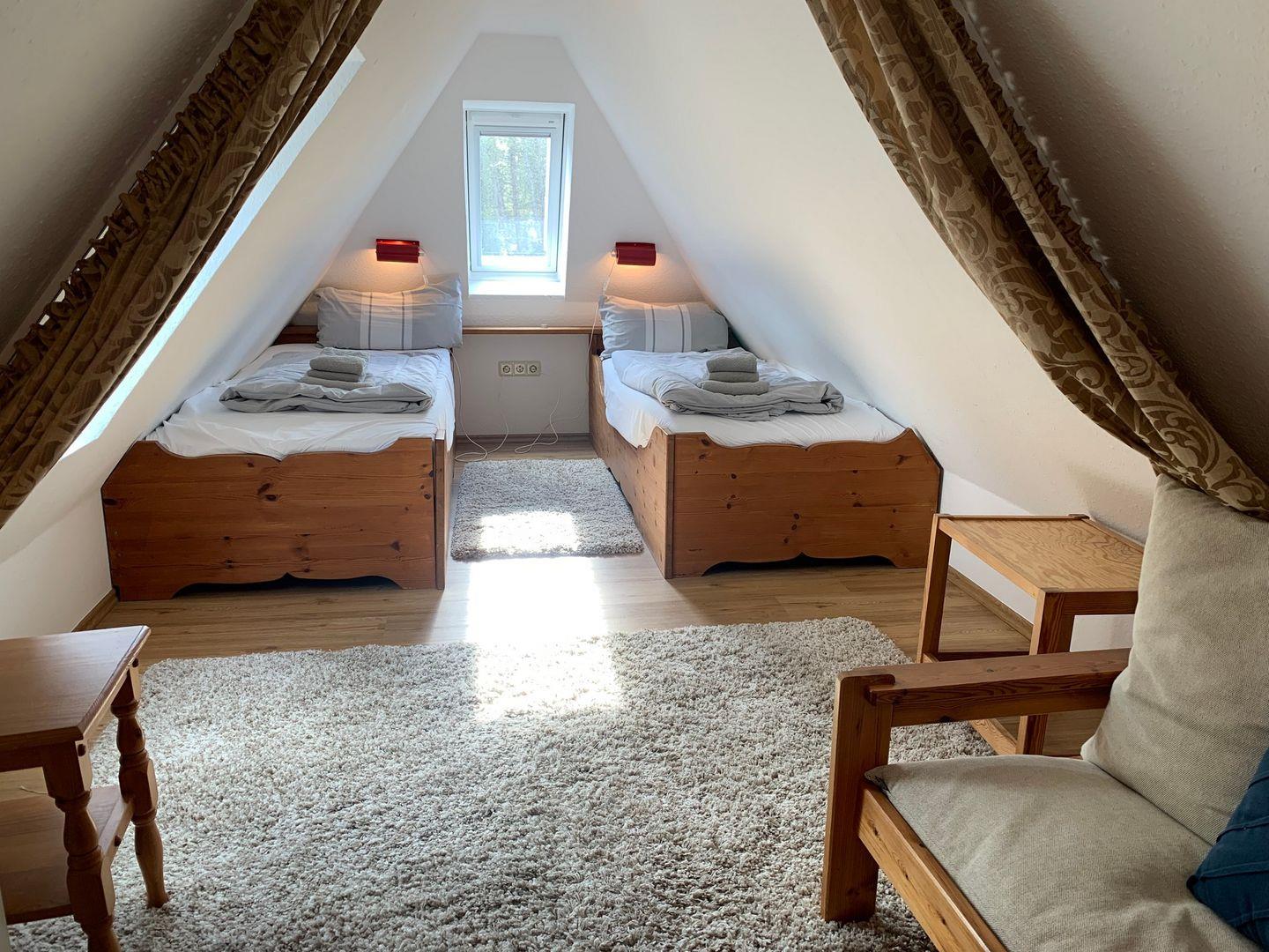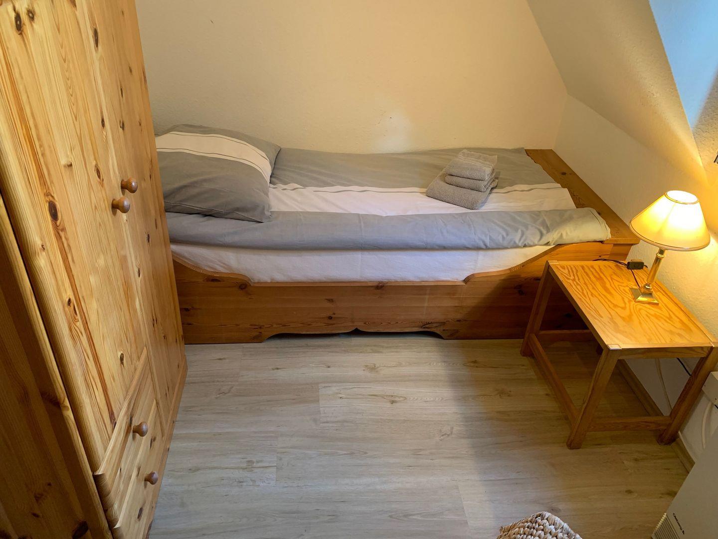 WC, 1 Schlafzimmer mit einem Einzelbett, im DG 2 Einzelbetten, Kinder-Bett u. Hochstuhl,