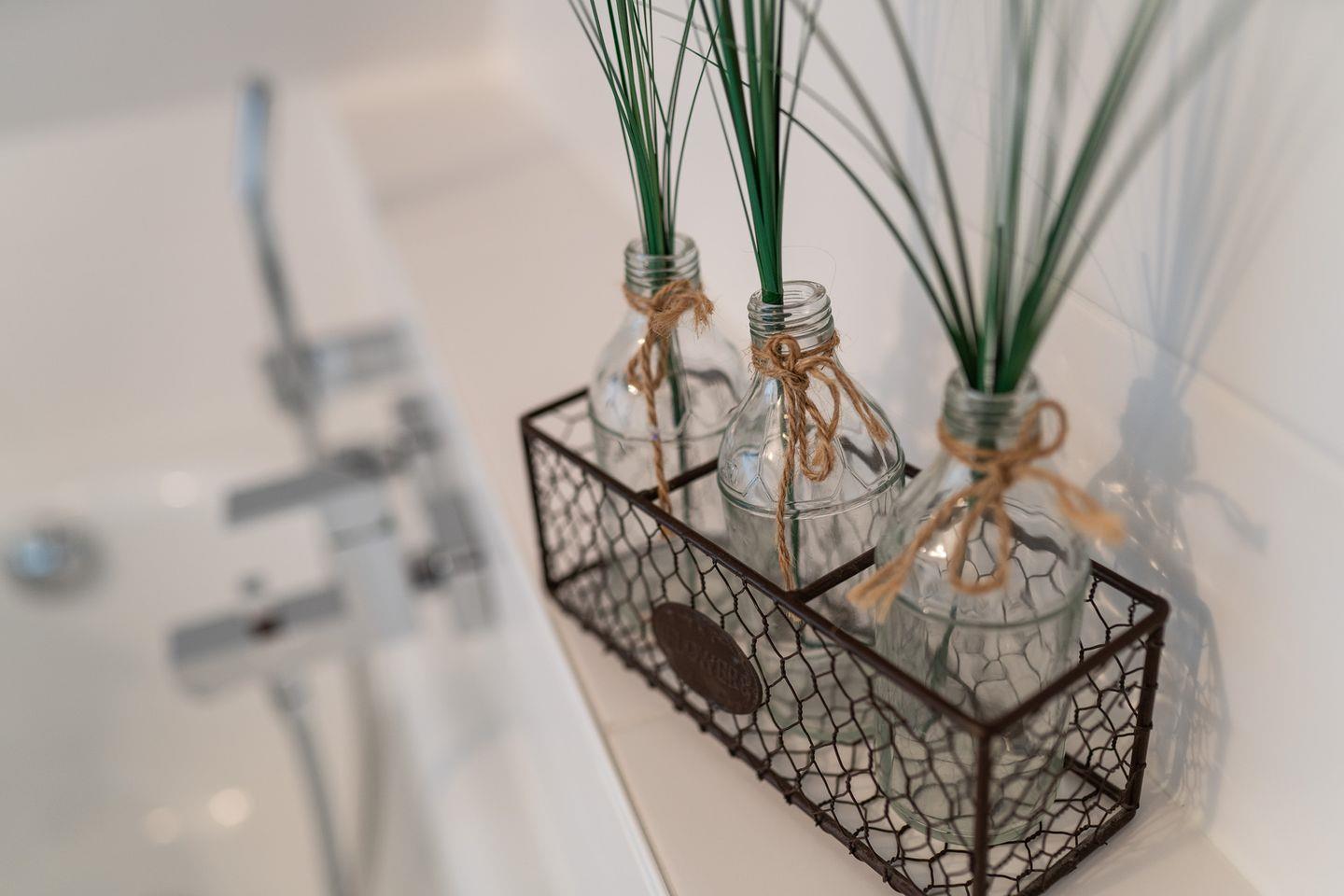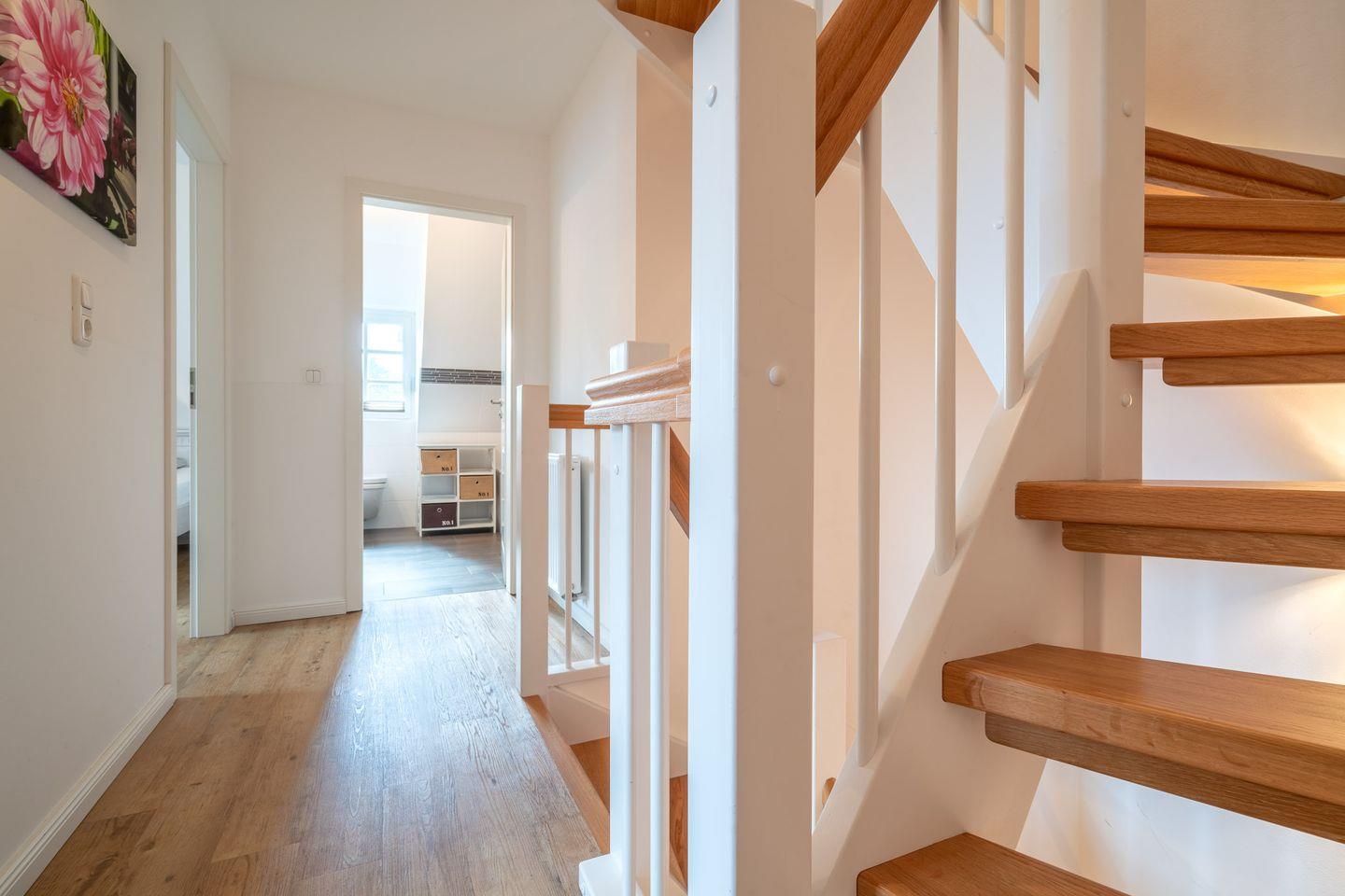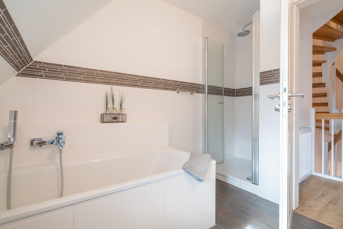 Zum Obergeschoss gehört weiterhin ein großes Badezimmer mit Wannenbad, Dusche und WC.