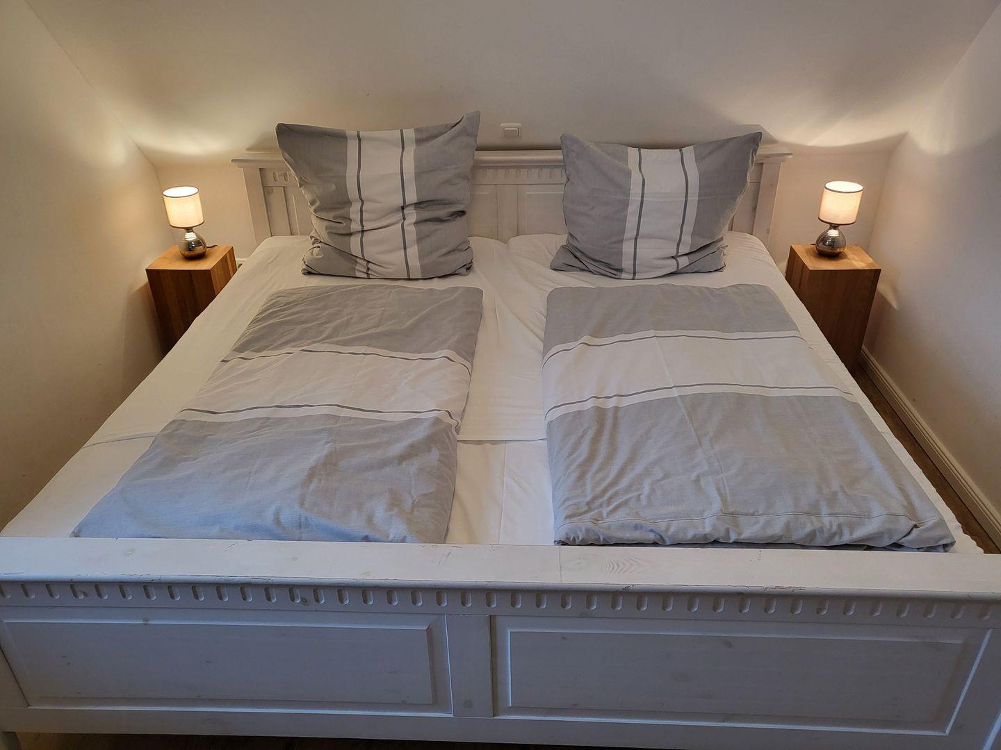 Eines ist eingerichtet mit großem 180x200cm Doppelbett und einem Flachbild-TV, ein weiteres Doppelbett mit großem 180x200cm Doppelbett.