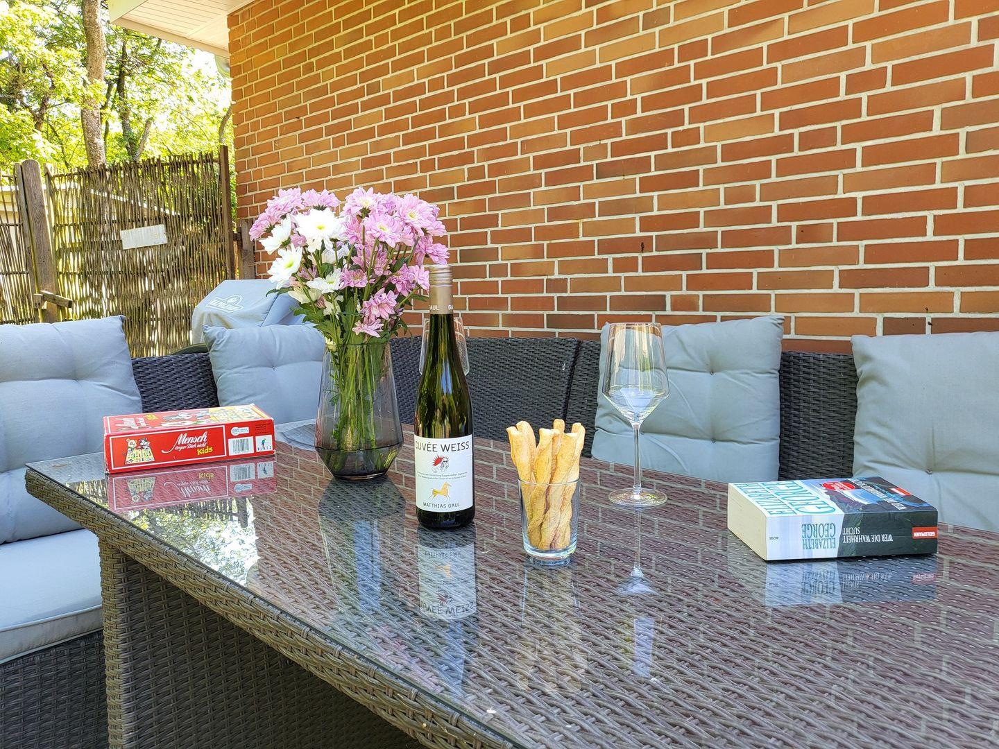 Zur Ferienwohnung gehört ein großer, lichtdurchfluteter Wintergarten.