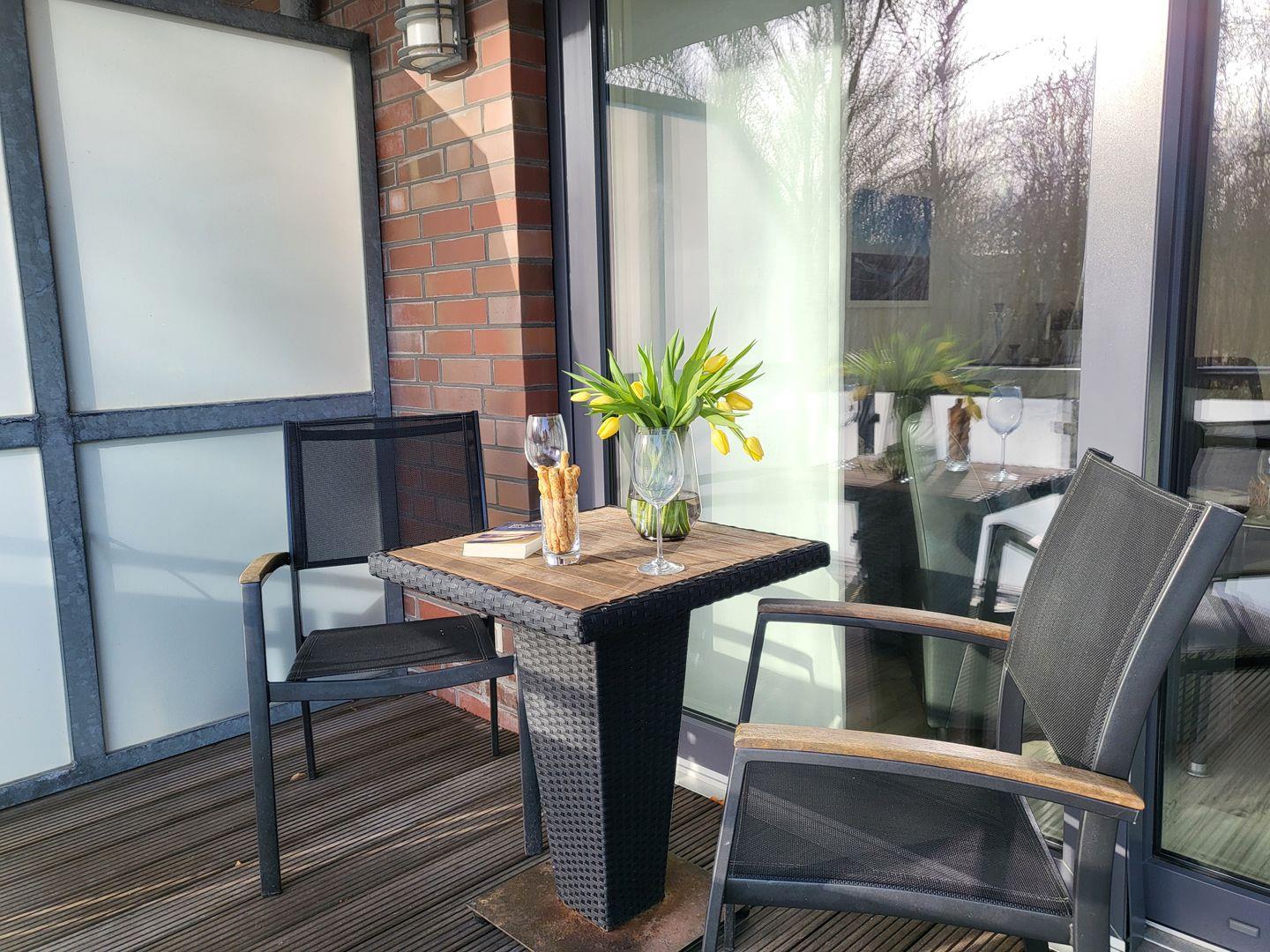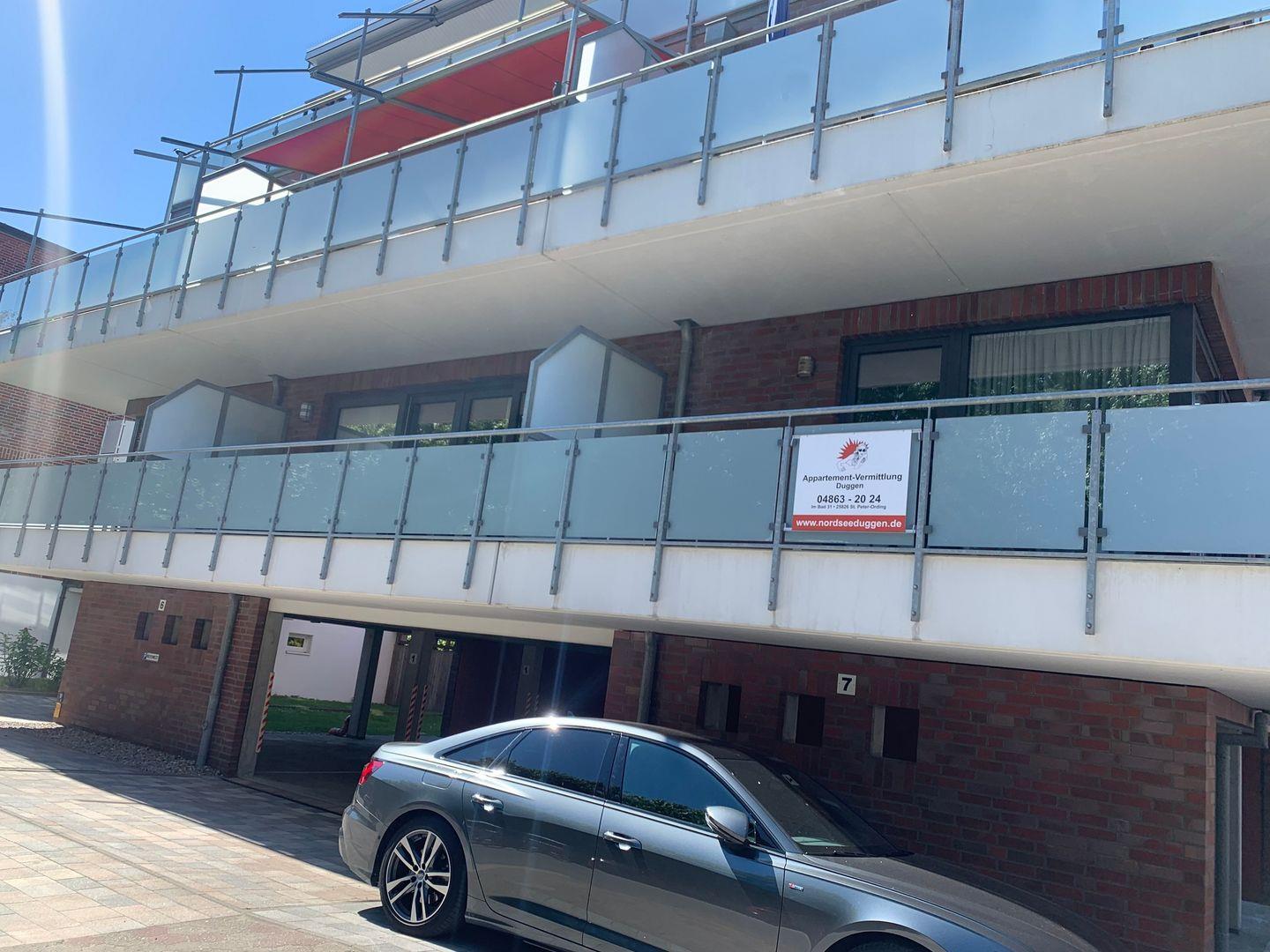 Moderne Ferienwohnung Sandperle in St. Peter Ording, zentral, strandnah mit Balkon, WLAN und Parkplatz.