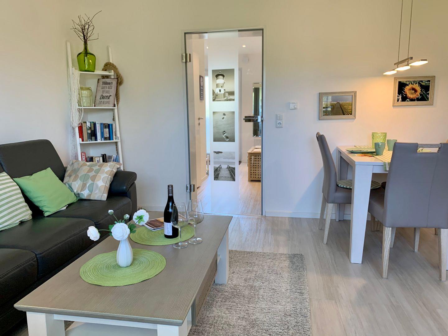 Moderne 2-Zimmer-Ferienwohnung mit Balkon im ruhigen Ortsteil Dorf in St. Peter-Ording, nahe Strand und Einkaufsmöglichkeiten.