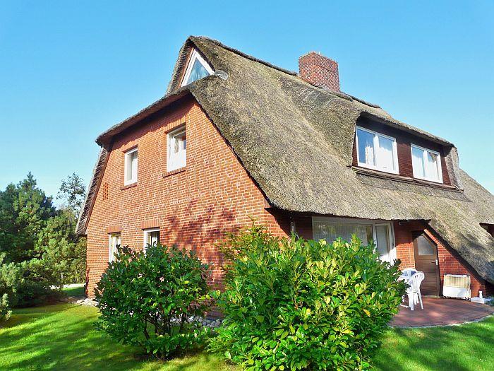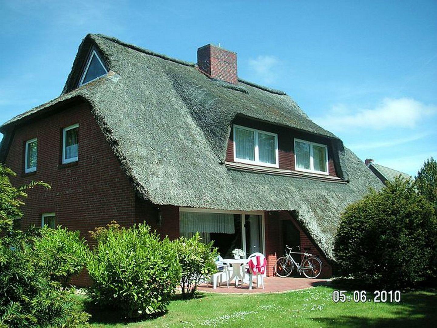 Moderne Reetdachwohnung mit Terrasse und Garten in St. Peter-Ording für Familien und Hunde.