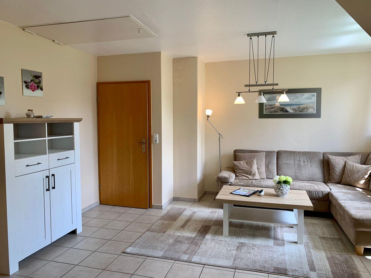 3 Zimmer Wohnung für bis zu 4 Personen im OG rechts, Terrasse im Garten, Wohnraum mit Sitz-und Essecke, 2
