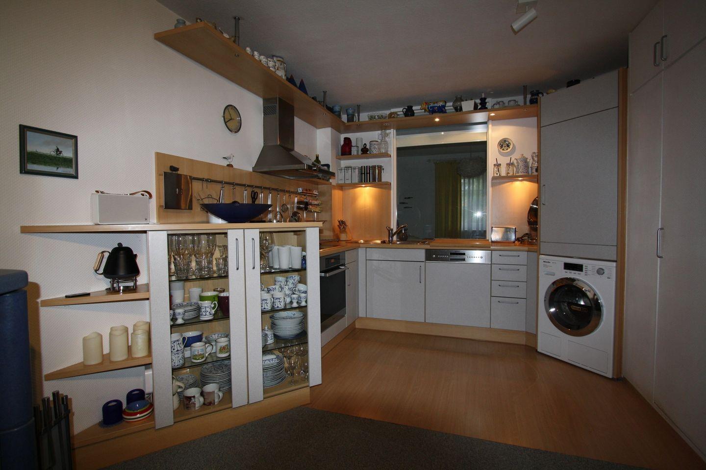 Die großzügige Wohnküche ist reichlich ausgestattete. Dort findet sich alles und noch viel mehr was für einen angenehmen Aufenthalt benötigt wird: Geschirrspüler, Induktionsfeld, Backofen und Waschtrockner.
