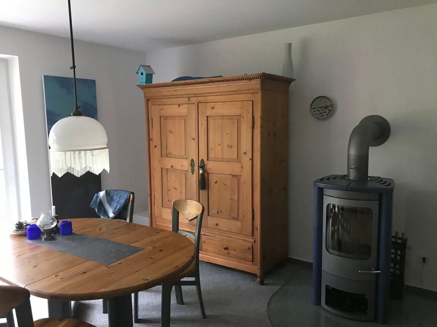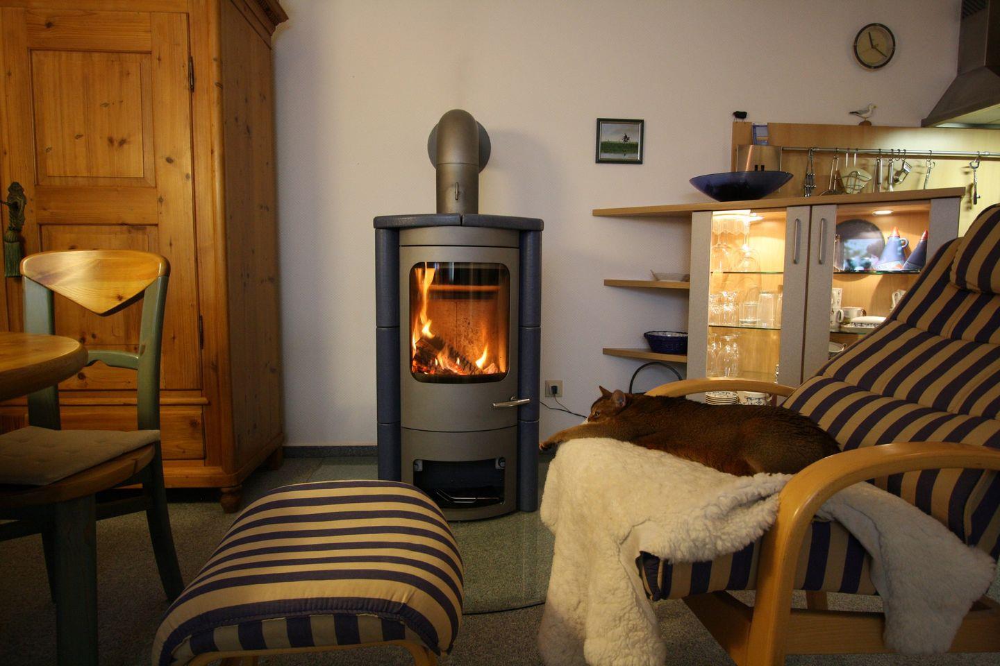 Im Wohn-Essbereich befindet sich ein Esstisch mit 4 Sitzplätzen, ein Kaminofen für die kalte Jahreszeit, eine Sitzecke mit ULTRA HD Android (Netflix, Amazon Prime und Sky fähig, falls man einen Account besitzt) TV , digitalen SAT-Empfang und HiFi-Anlage mit Internetradio.