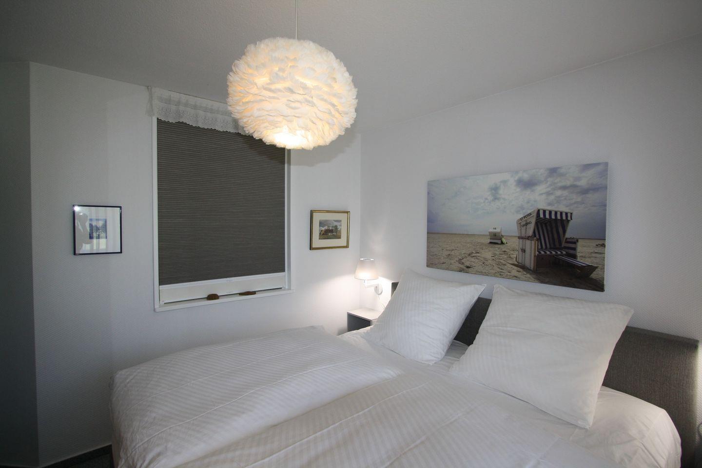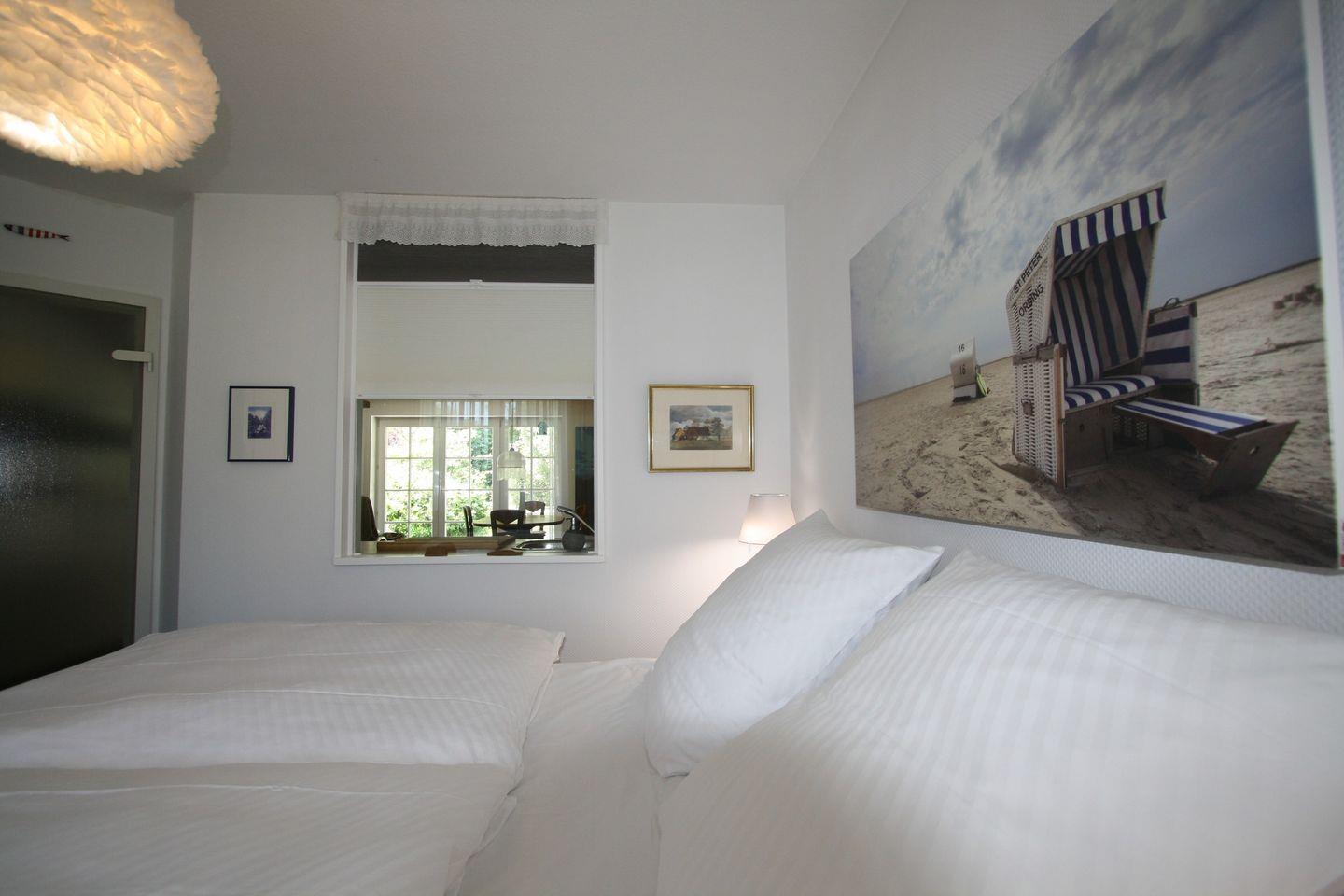 Die friesisch eingerichtete Ferienwohnung liegt im Erdgeschoss rechts und verfügt über 2 sehr gemütliche Zimmer und bietet zusätzlich eine Terrasse in Südlage mit kleinem Garten und Blick in den Kiefernwald. Dort lädt auch der Strandkorb zum Verweilen und Lesen ein.