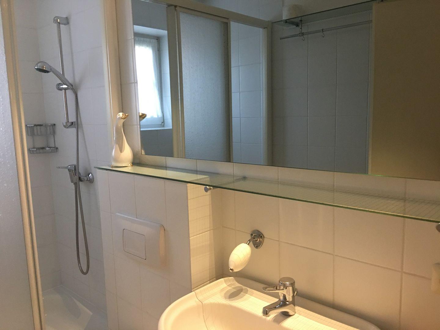 Im Flur befindet sich eine Garderobe, sowie der Zugang zum Badezimmer mit WC und Dusche.