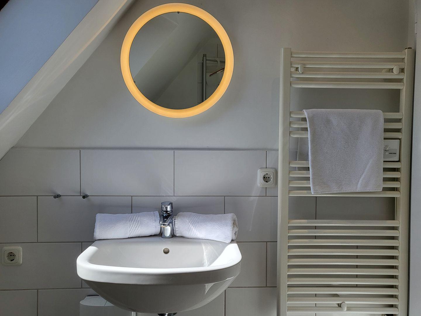 Zur Ferienwohnung gehört ein modernes, helles Duschbad mit WC.
