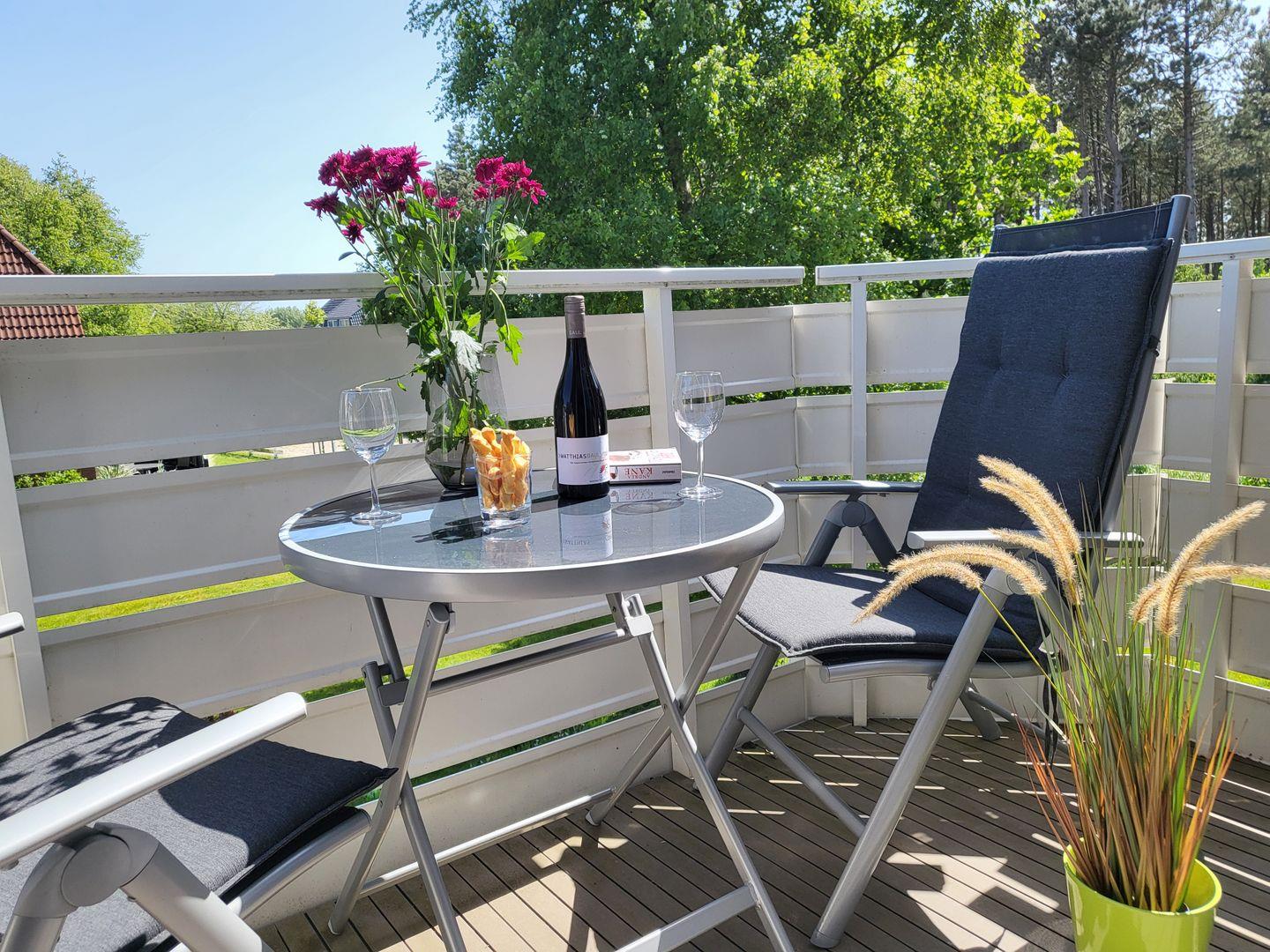Moderne Ferienwohnung mit Balkon in ruhiger Lage nahe Strand und Wäldchen in St. Peter-Ording.
