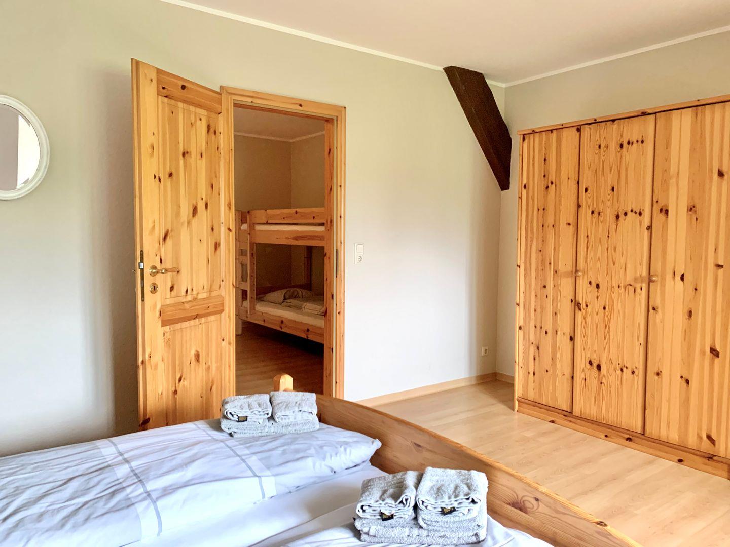 Im Obergeschoss befinden sich die beiden Schlafzimmer der Ferienwohnung.