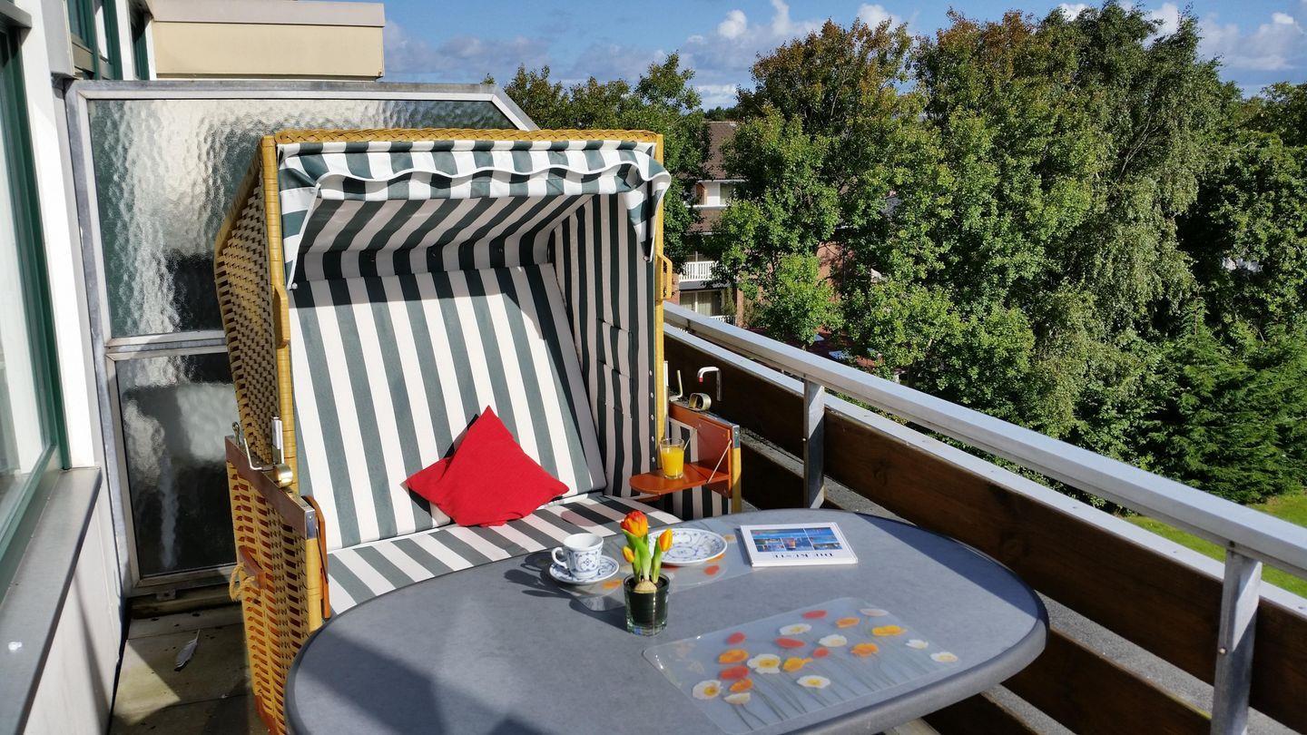 Modernes Penthouse mit Balkon und Strandkorb in zentraler Lage von St. Peter-Ording.