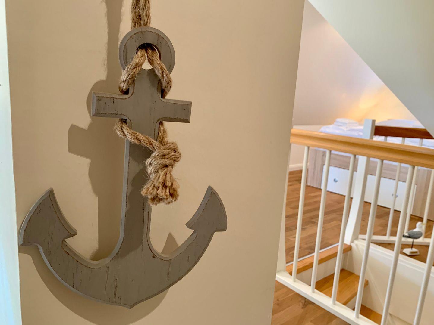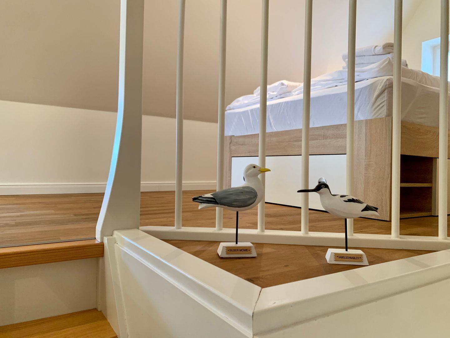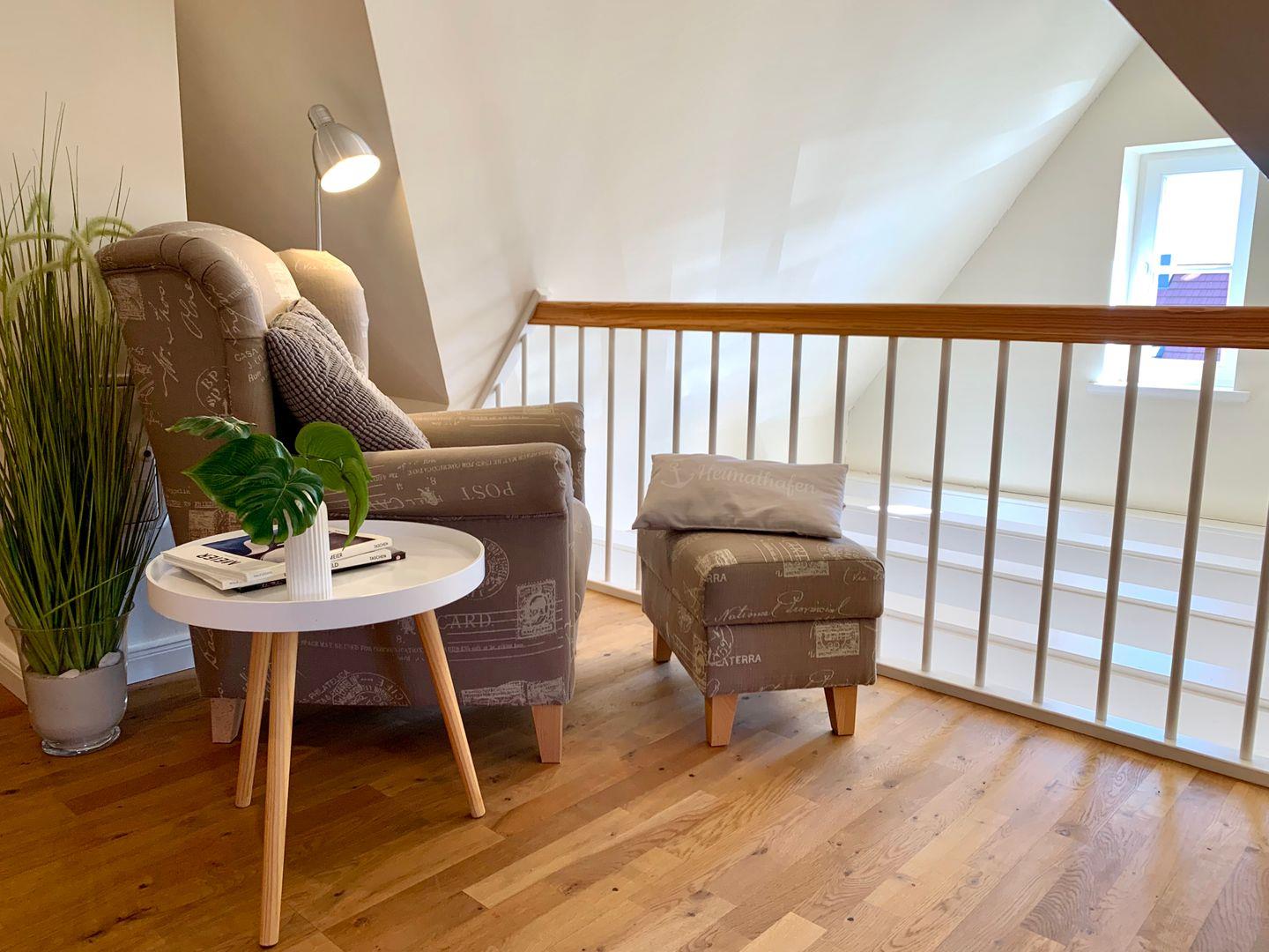 Im Dachgeschoss stehen auf der offenen Galerie zum Wohnzimmer hin ein 140x200cm Doppelbett sowie ein urgemütlicher Ohrensessel und ein Schreibtisch zur Verfügung.