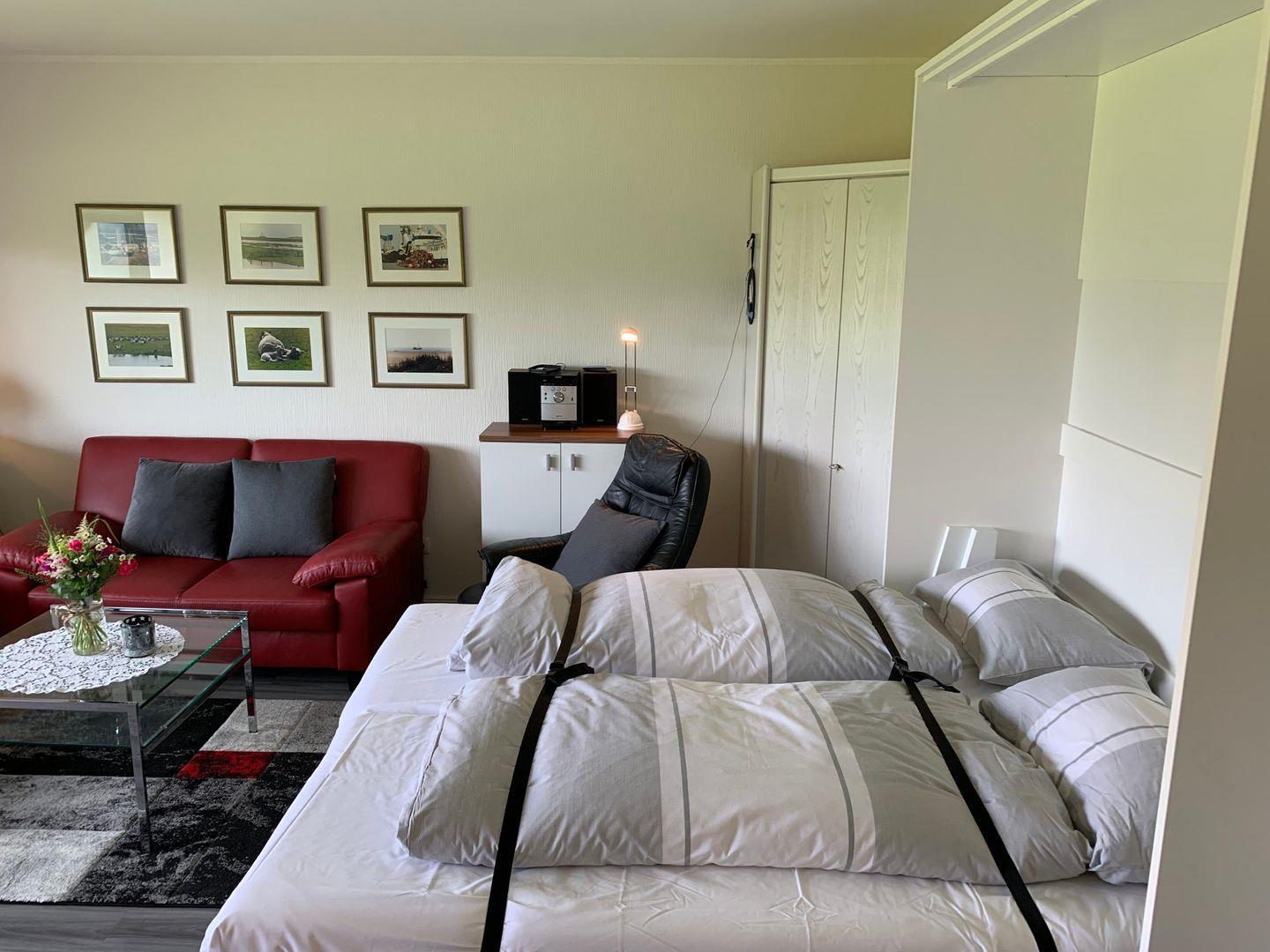 Die 42m² große 1-Zimmer Ferienwohnung liegt im Erdgeschoss und bietet 3 Personen Platz für den Urlaub in St. Peter Ording.