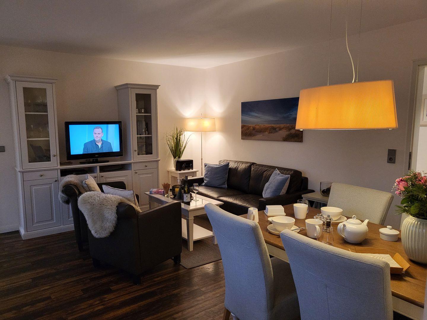 Für die multimediale Unterhaltung sorgen Flachbild-TV im Wohnzimmer, sowie im oberen Schlafzimmer und kostenfreies W-LAN.