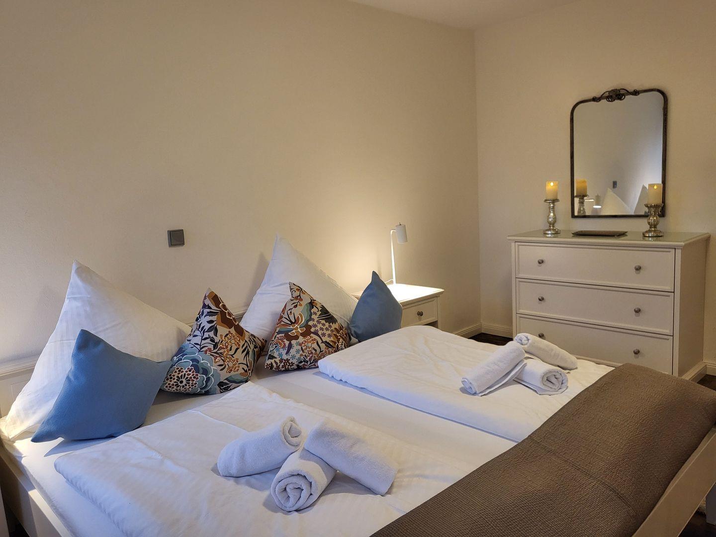 Die beiden wunderbar hell eingerichteten Schlafzimmer sind mit hochwertigen 180x200cm Doppelbetten ausgestattet.