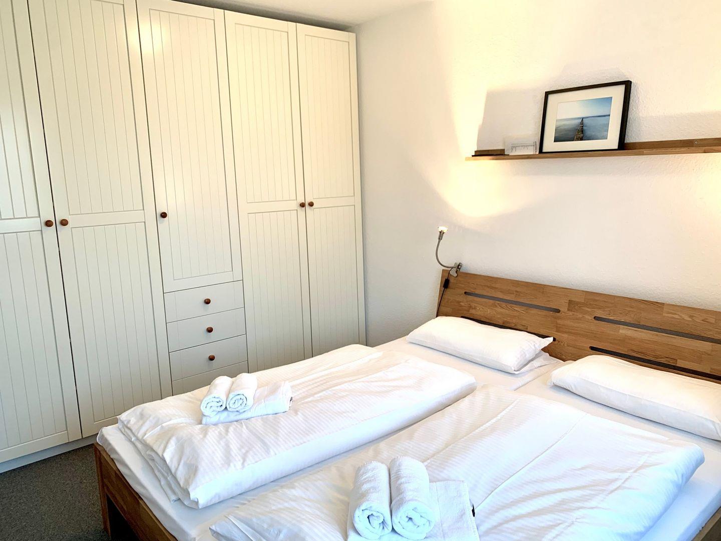 Im separaten Schlafzimmer steht ein großes 180x200cm Doppelbett sowie ein kompakter Flachbild-TV zur Verfügung.