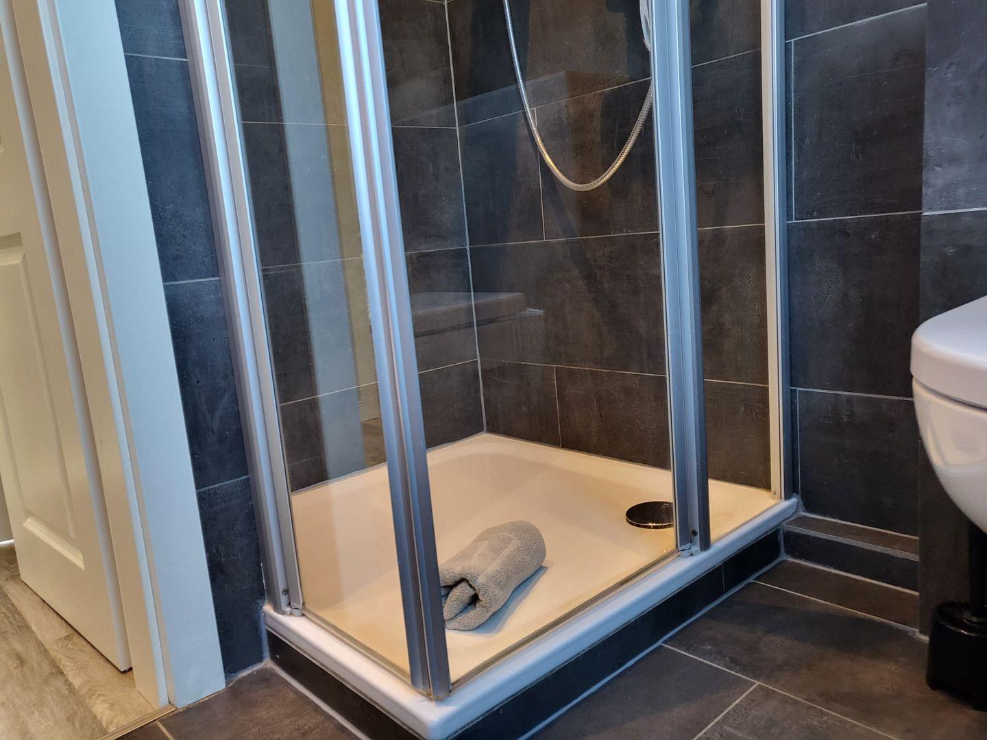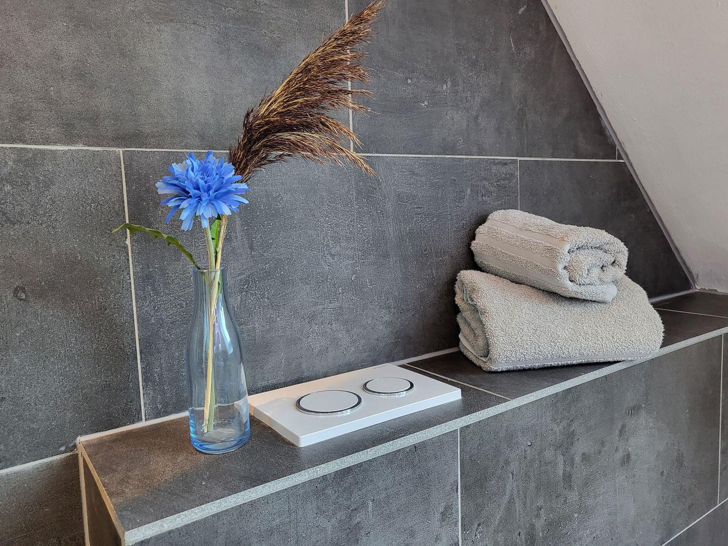 Duschbad mit WC. WLAN, Fahrradabstellraum und PKW-Stellplatz vorhanden.